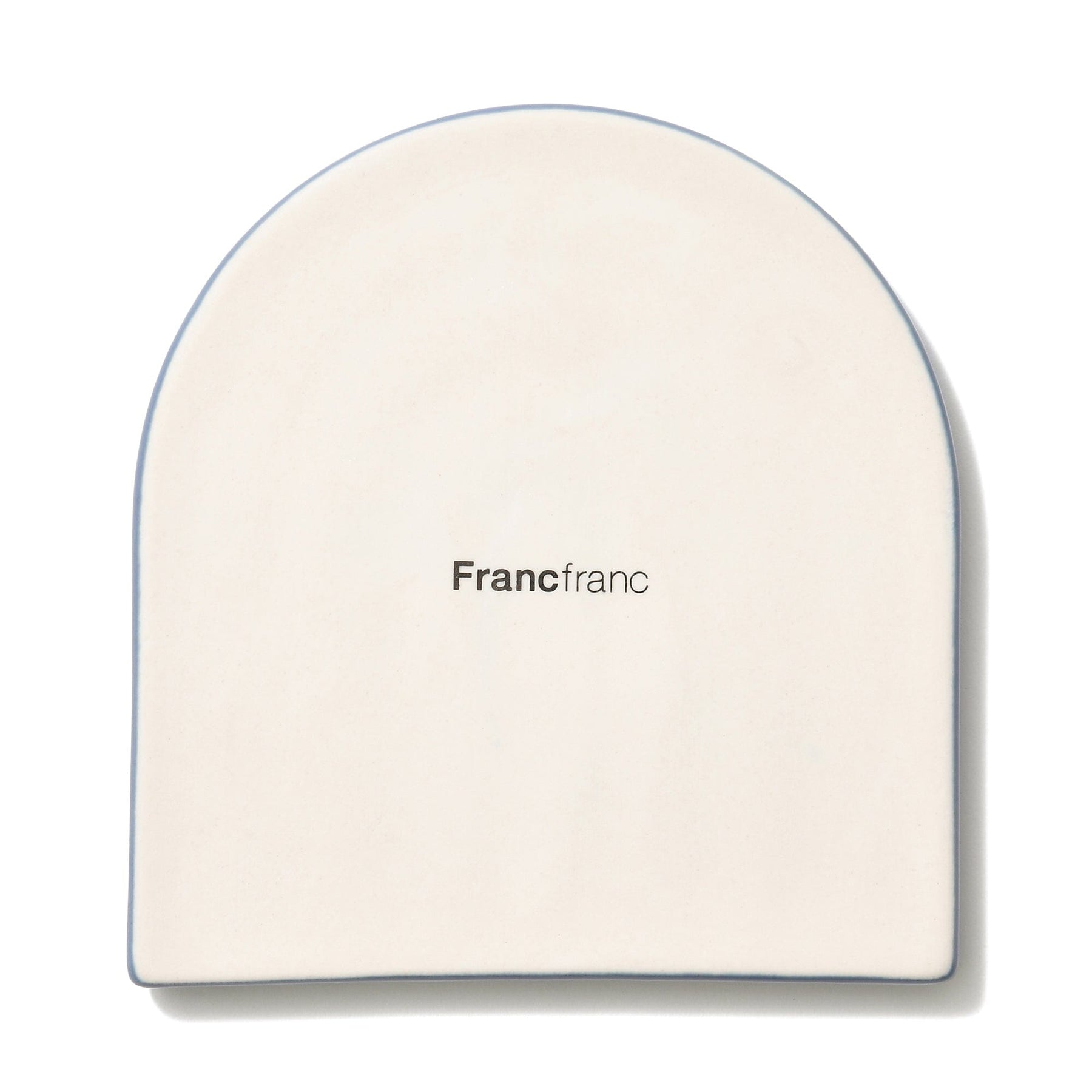 A ceramic coaster with an arch design.