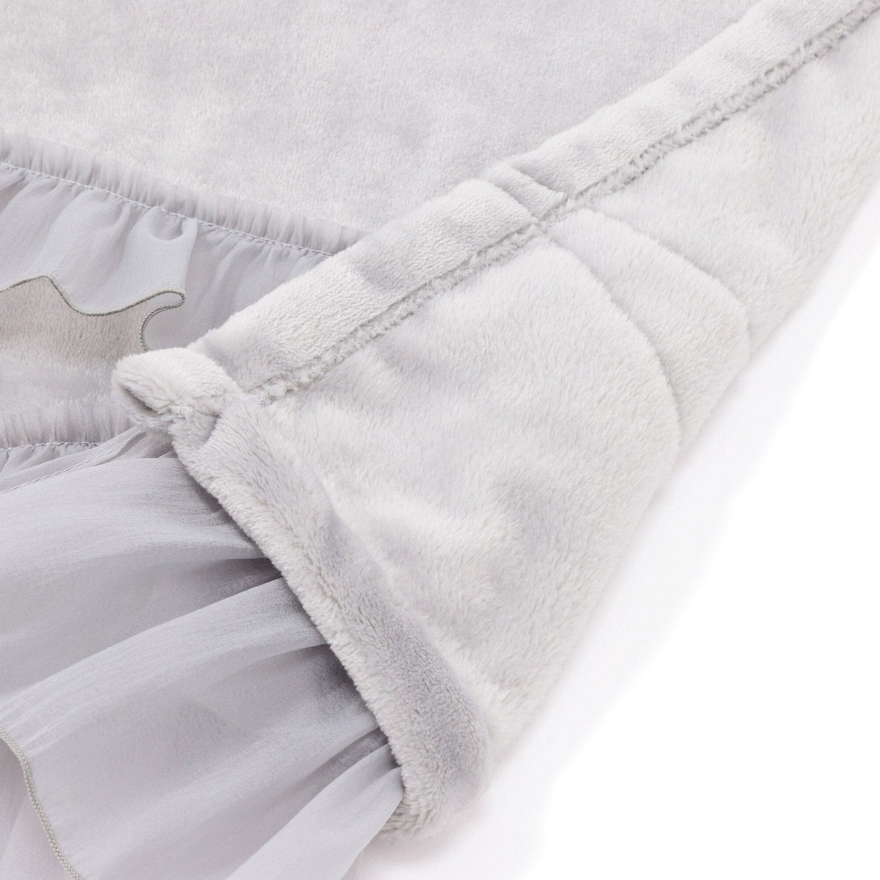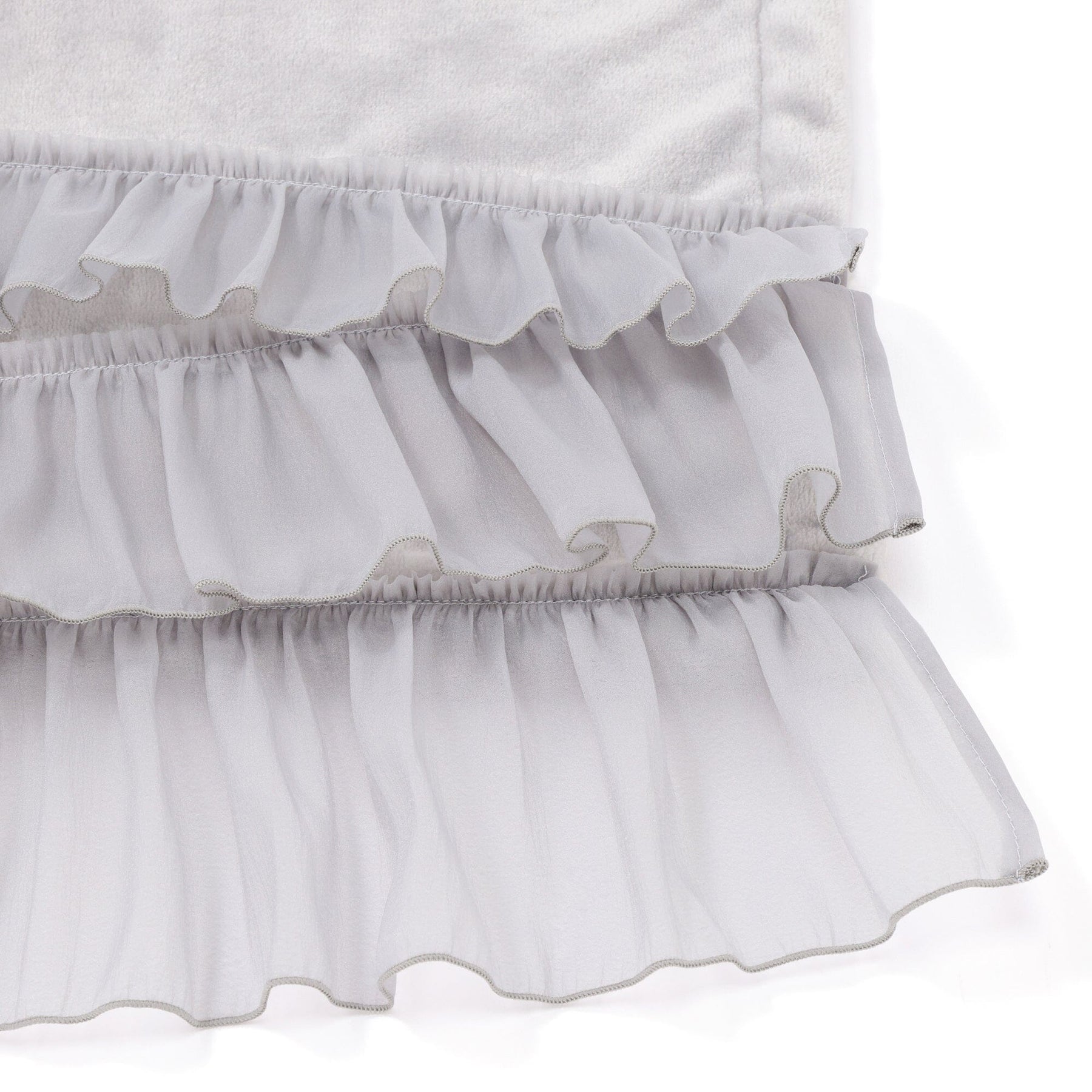 This throw (lap blanket) is made of smooth microfiber fabric with soft organza ruffles.