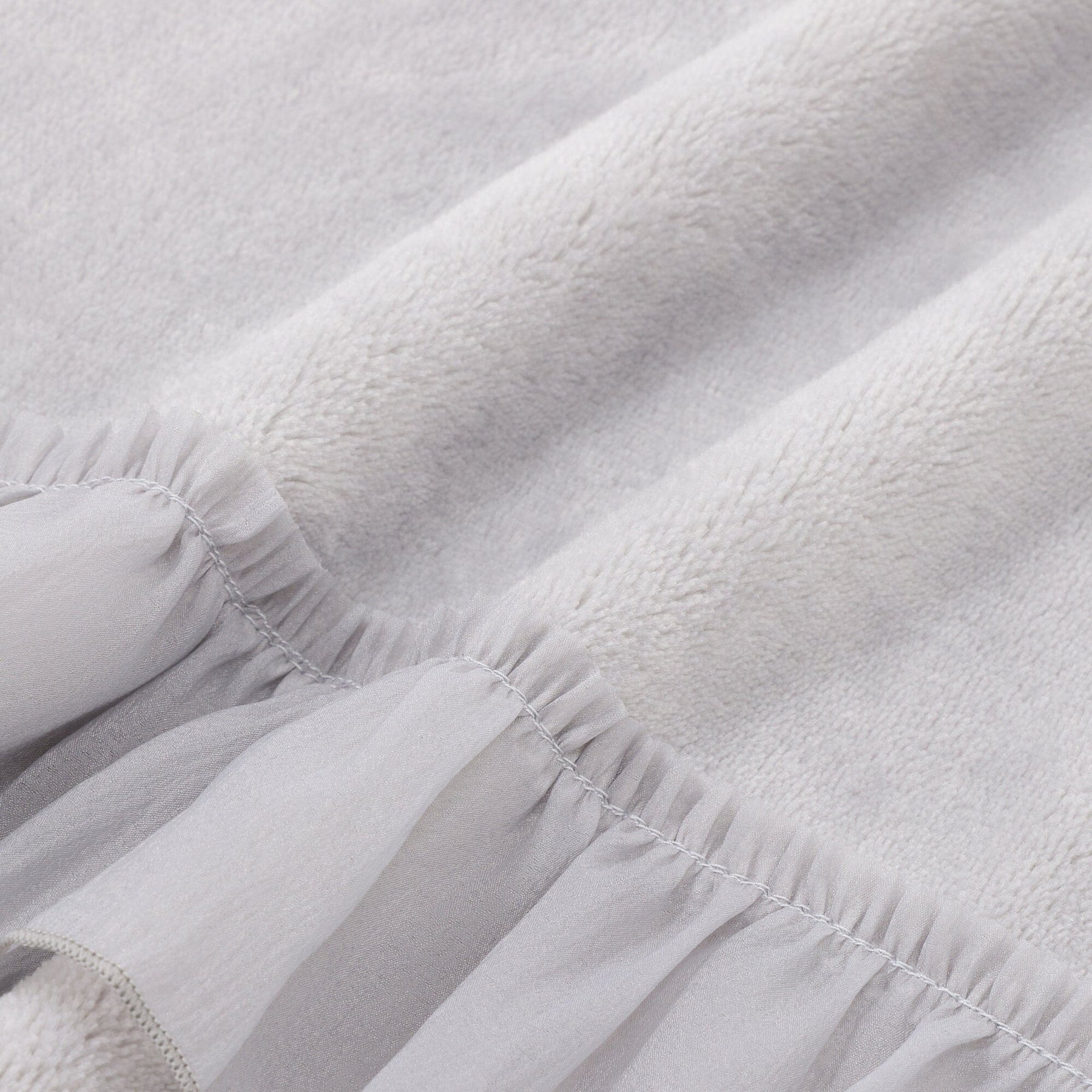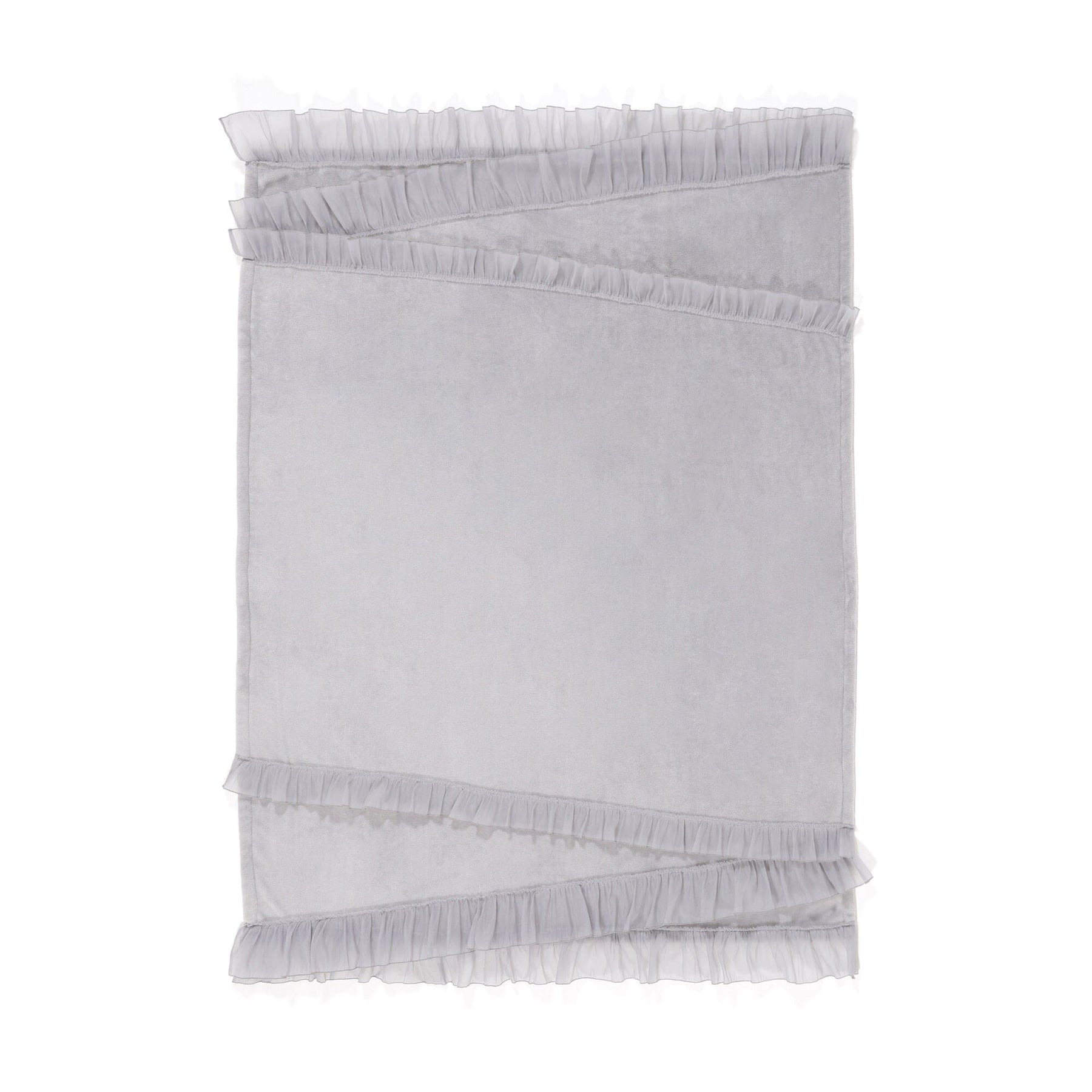 This throw (lap blanket) is made of smooth microfiber fabric with soft organza ruffles.