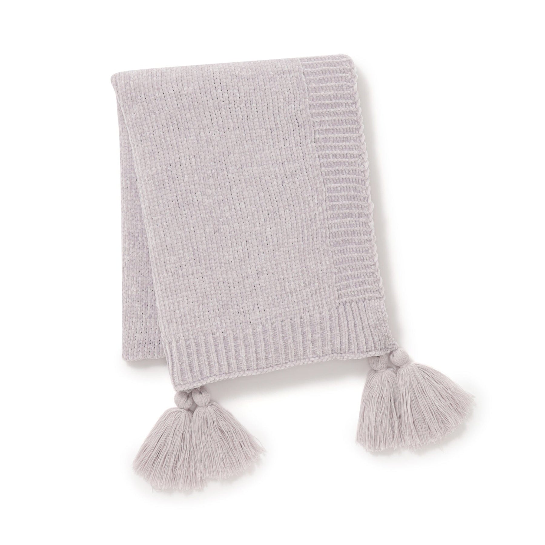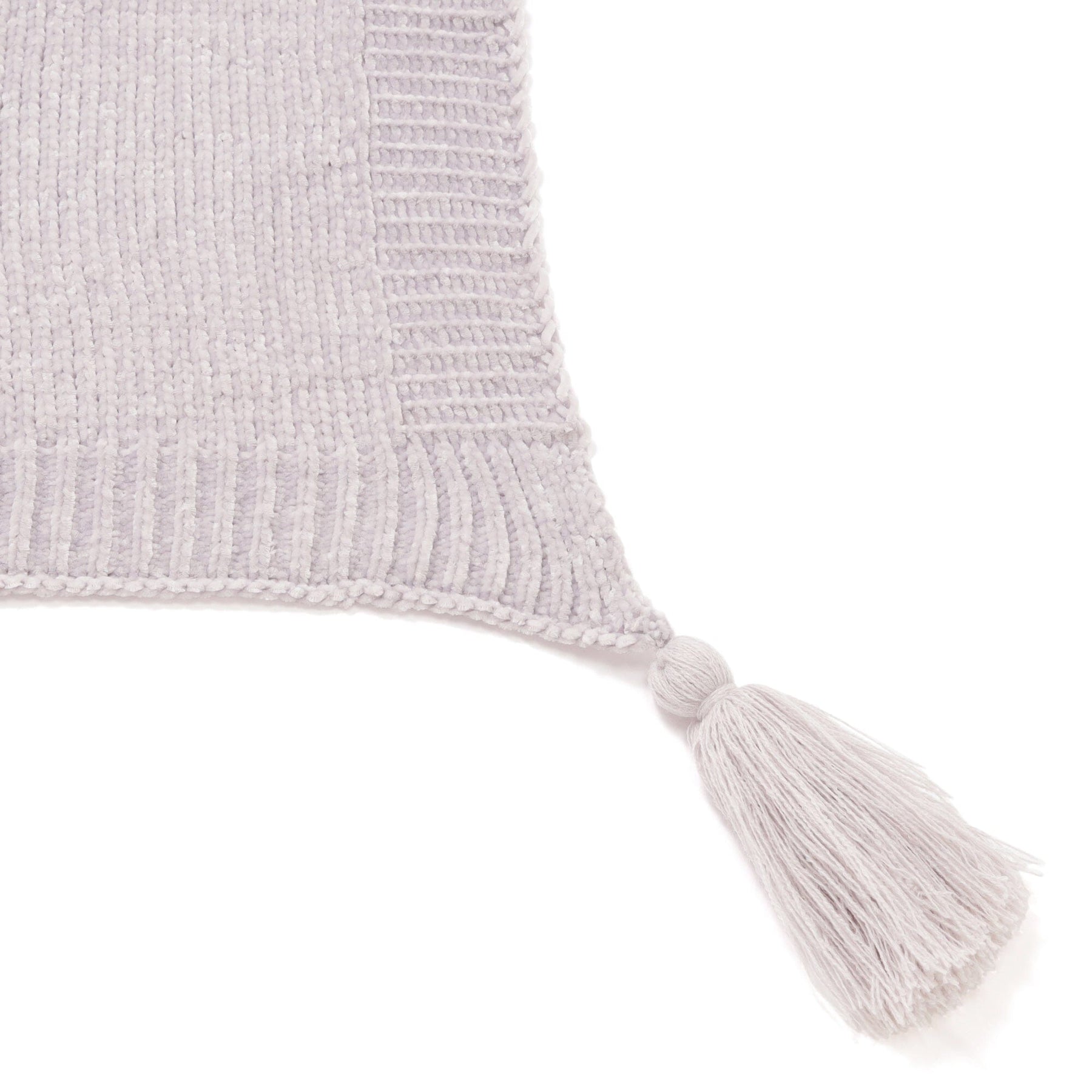 This throw (lap blanket) is knitted with lustrous mohair yarn for a soft, fluffy feel.The large tassels enhance the timeless, natural design. The airy, fluffy, and soft feel makes it a delight to wear.