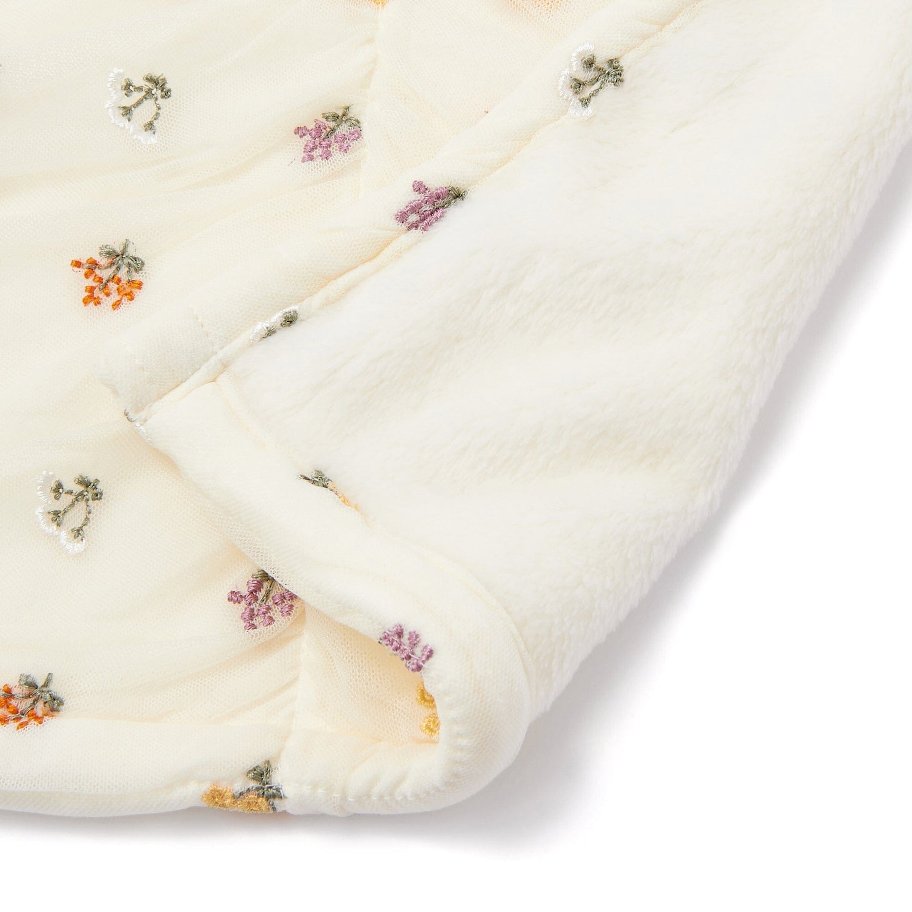 This trendy throw features spring-like tulle and cute floral embroidery.Made of microfiber for a soft feel, the gathered tulle with floral embroidery creates a soft, three-dimensional, and luxurious appearance.