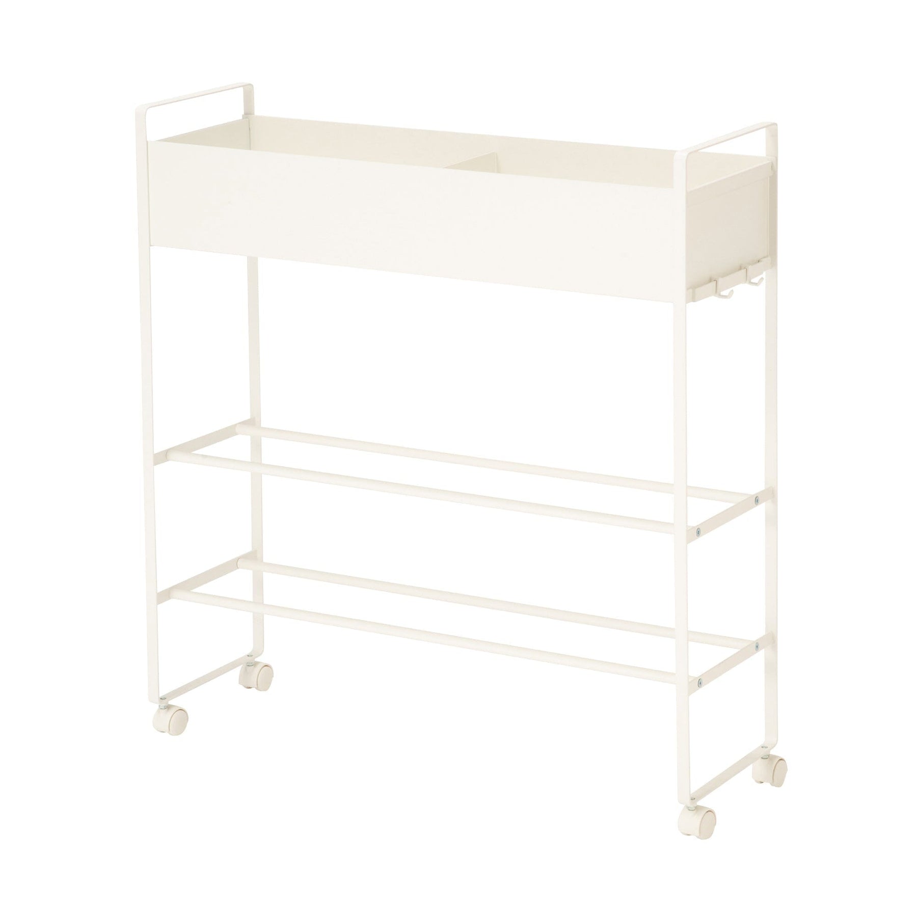 Comes with a convenient movable divider. The casters make cleaning a breeze.