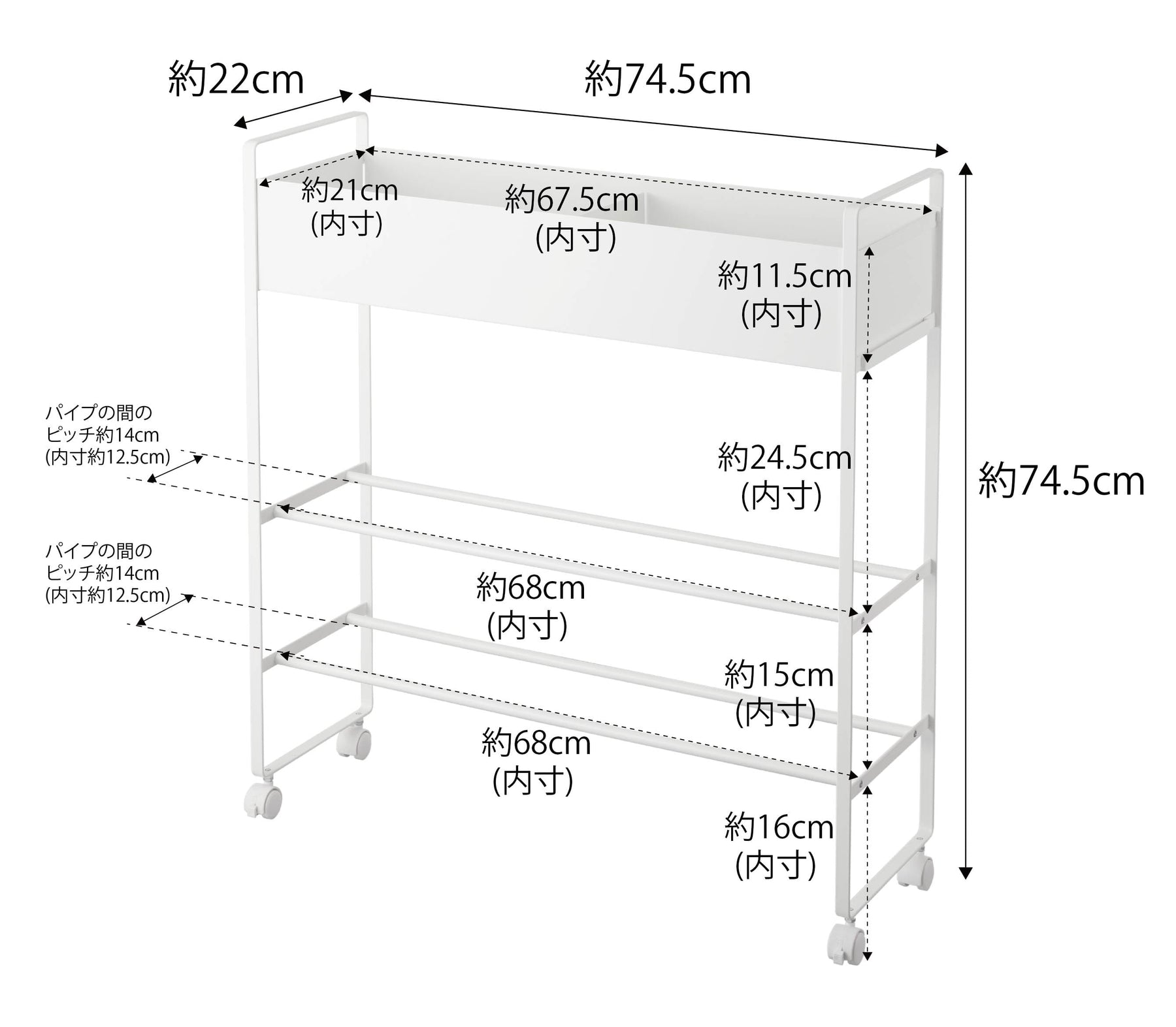Size: W745 (700 excluding casters) x D220 x H745mm