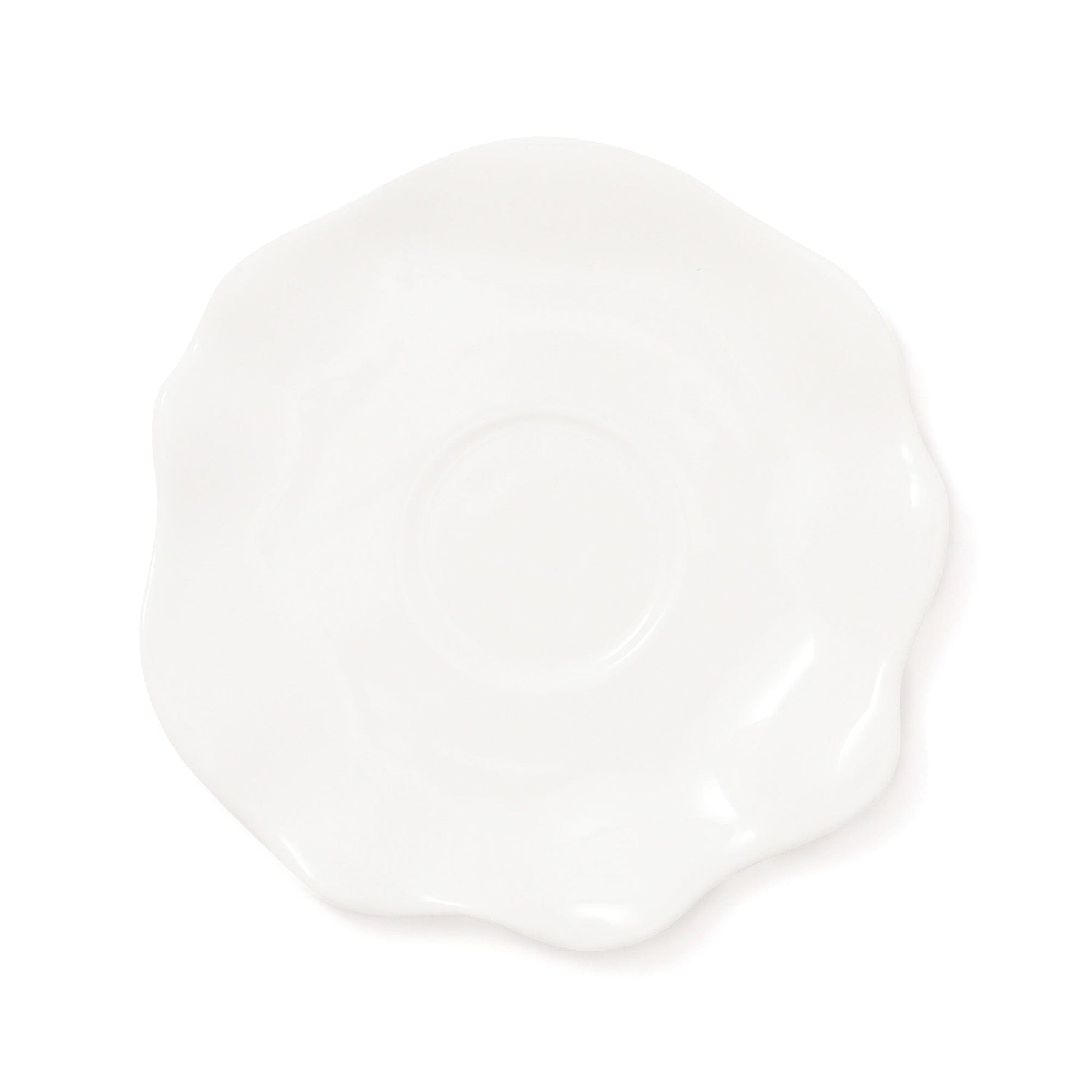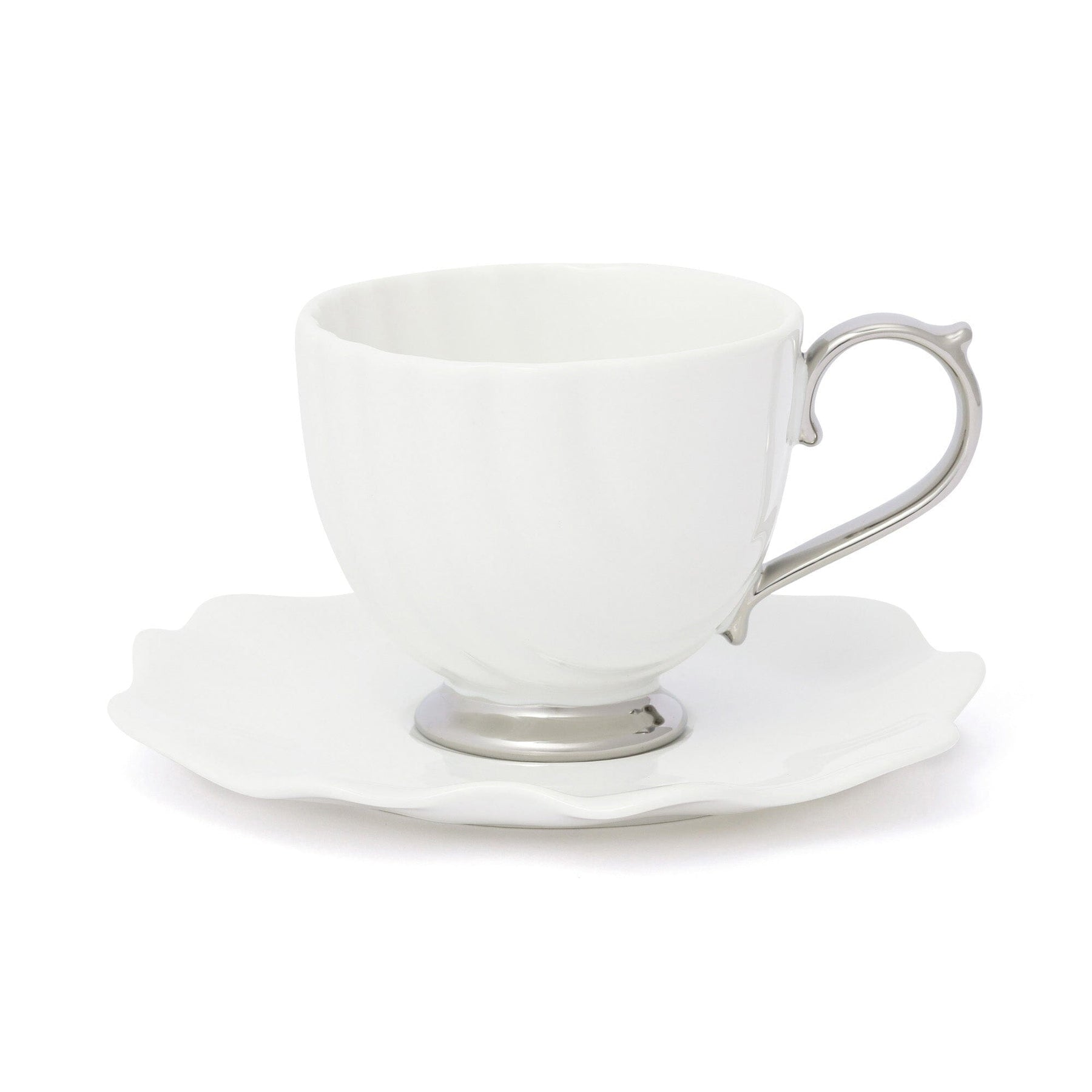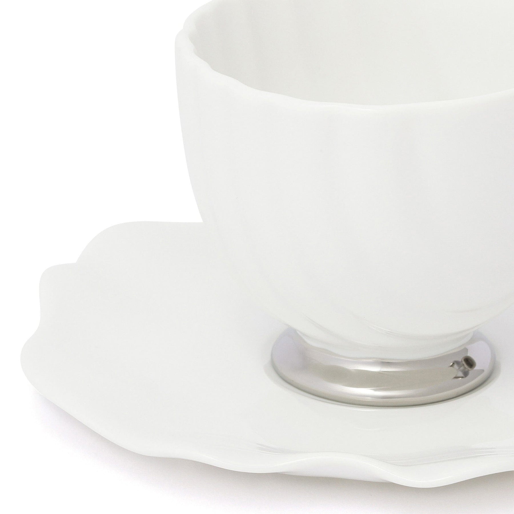 The cup features the ridges and bony shape of a shell, while the saucer features waves.