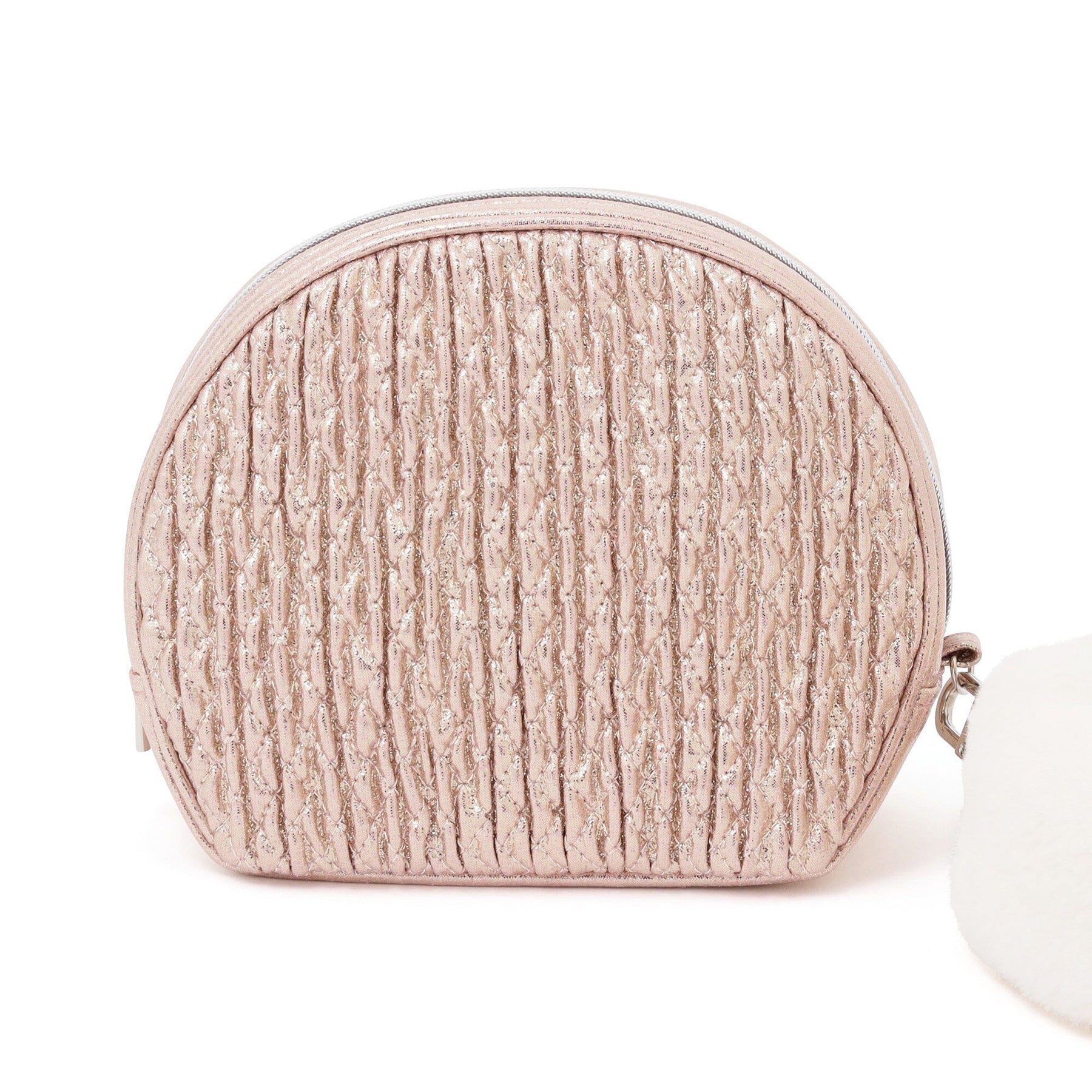 This pouch's glittering fabric exudes a holiday vibe.