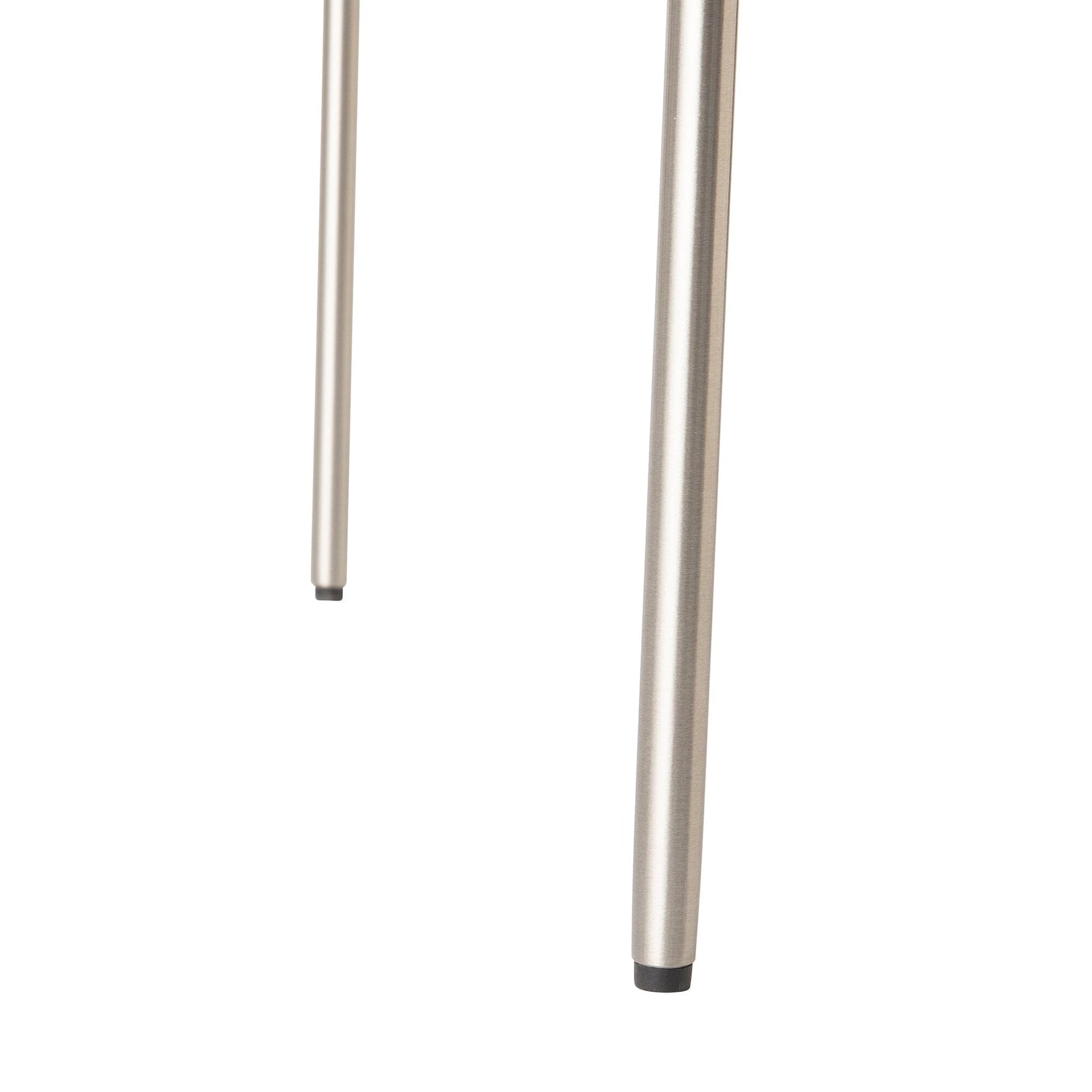 The asymmetrical, organic shape and light design with silver legs complement a large sofa.