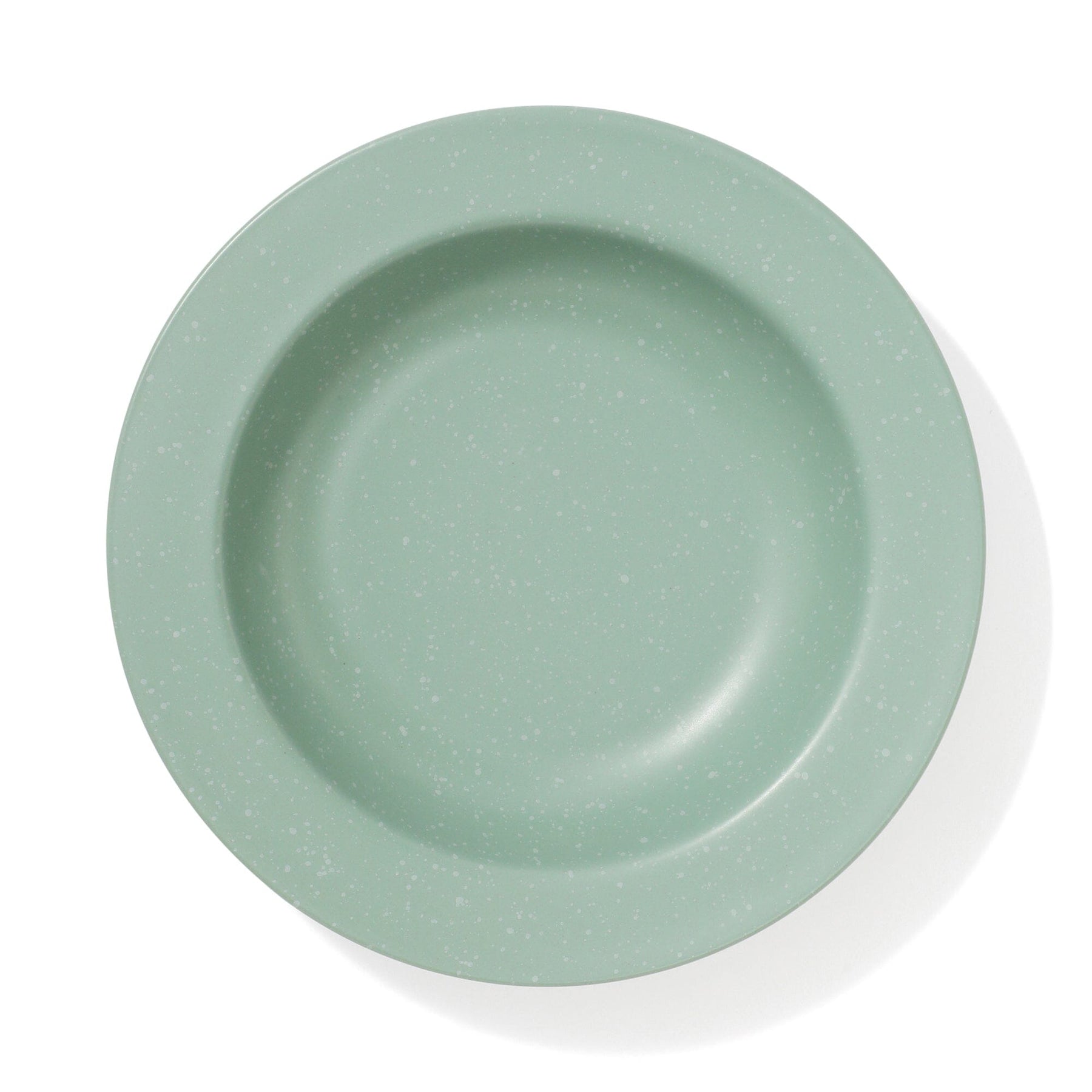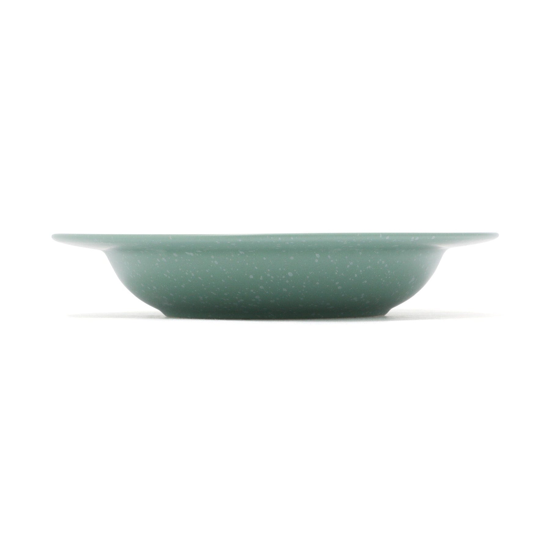 This deep plate features a splatter pattern and an attractive autumn color variation.