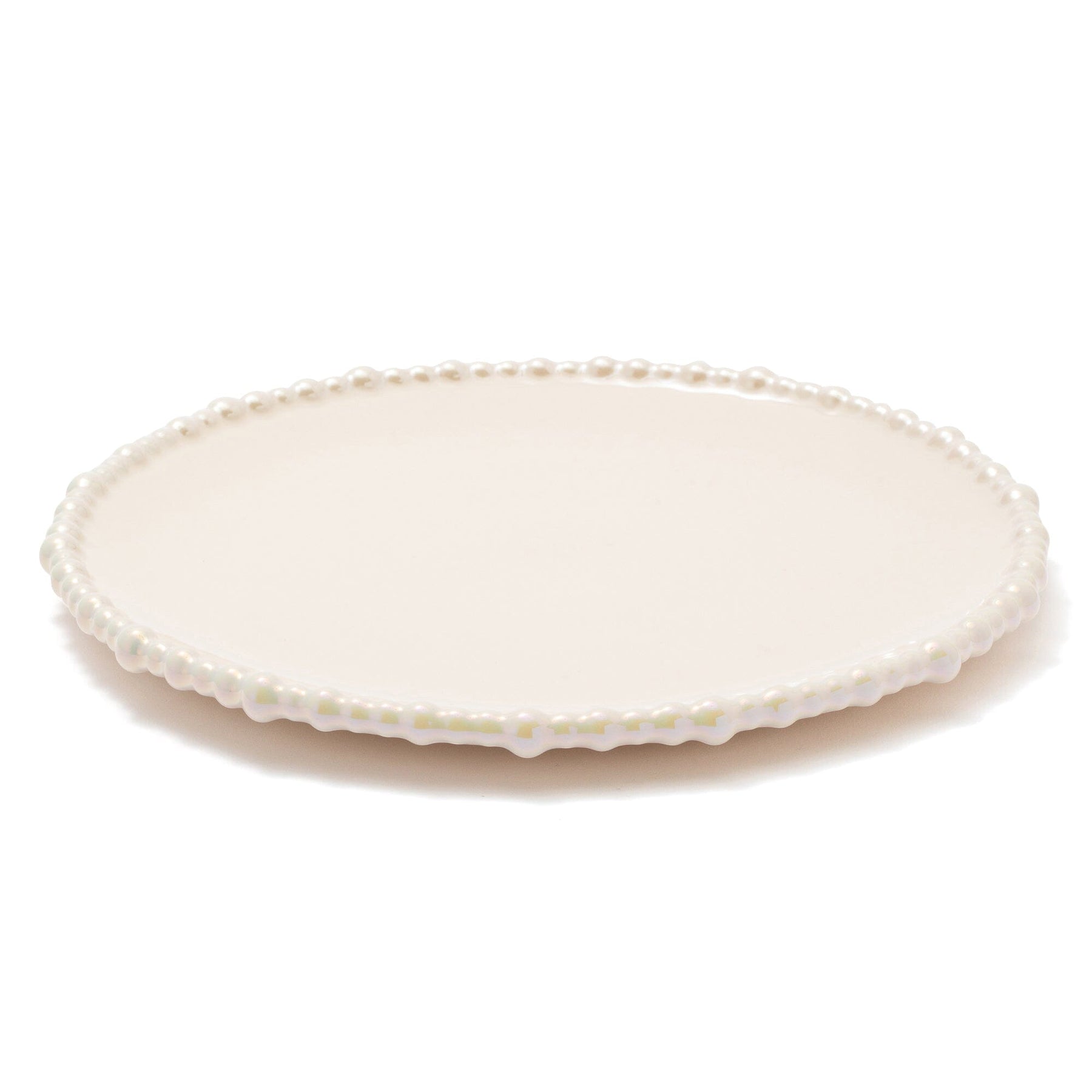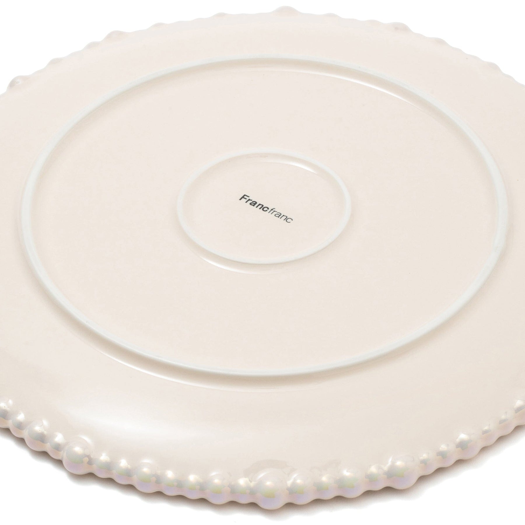 A plate decorated with randomly sized pearls on the rim.A gorgeous design that is also easy to use in everyday life.
