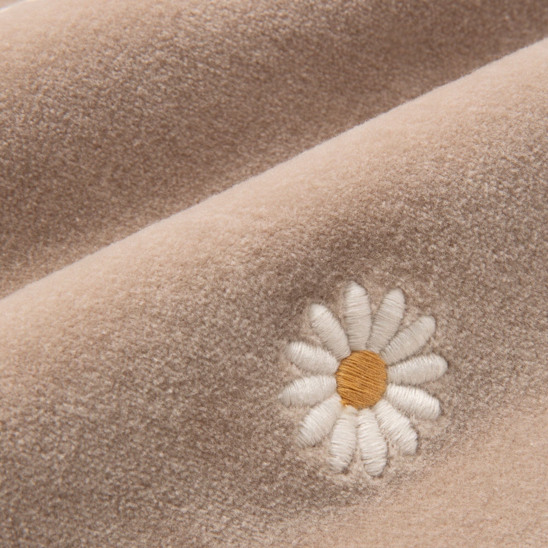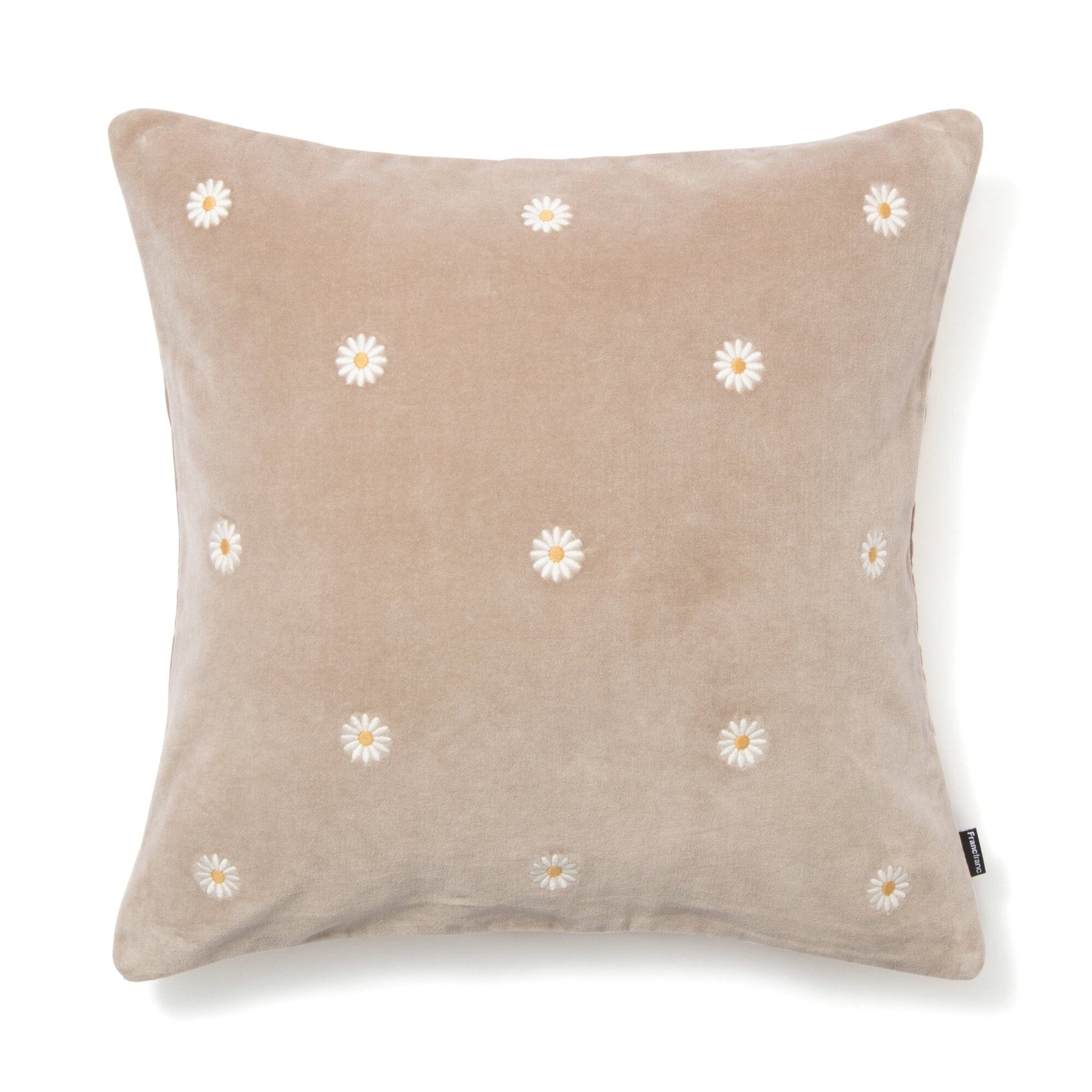 This cushion cover features a matte velvet fabric and is embroidered with a daisy motif all over.The daisy embroidery stands out against the calm grayish beige, creating an elegant and sophisticated atmosphere.