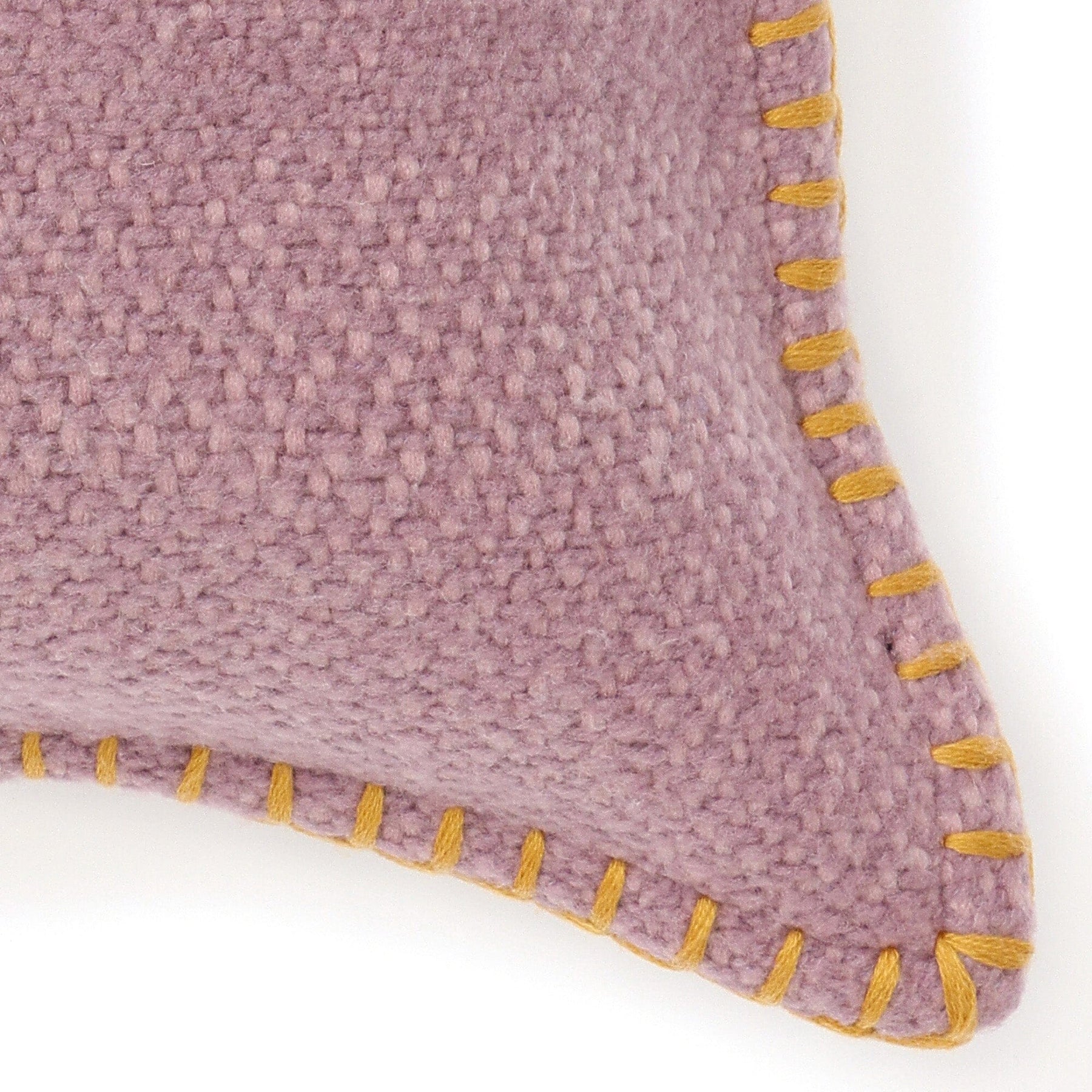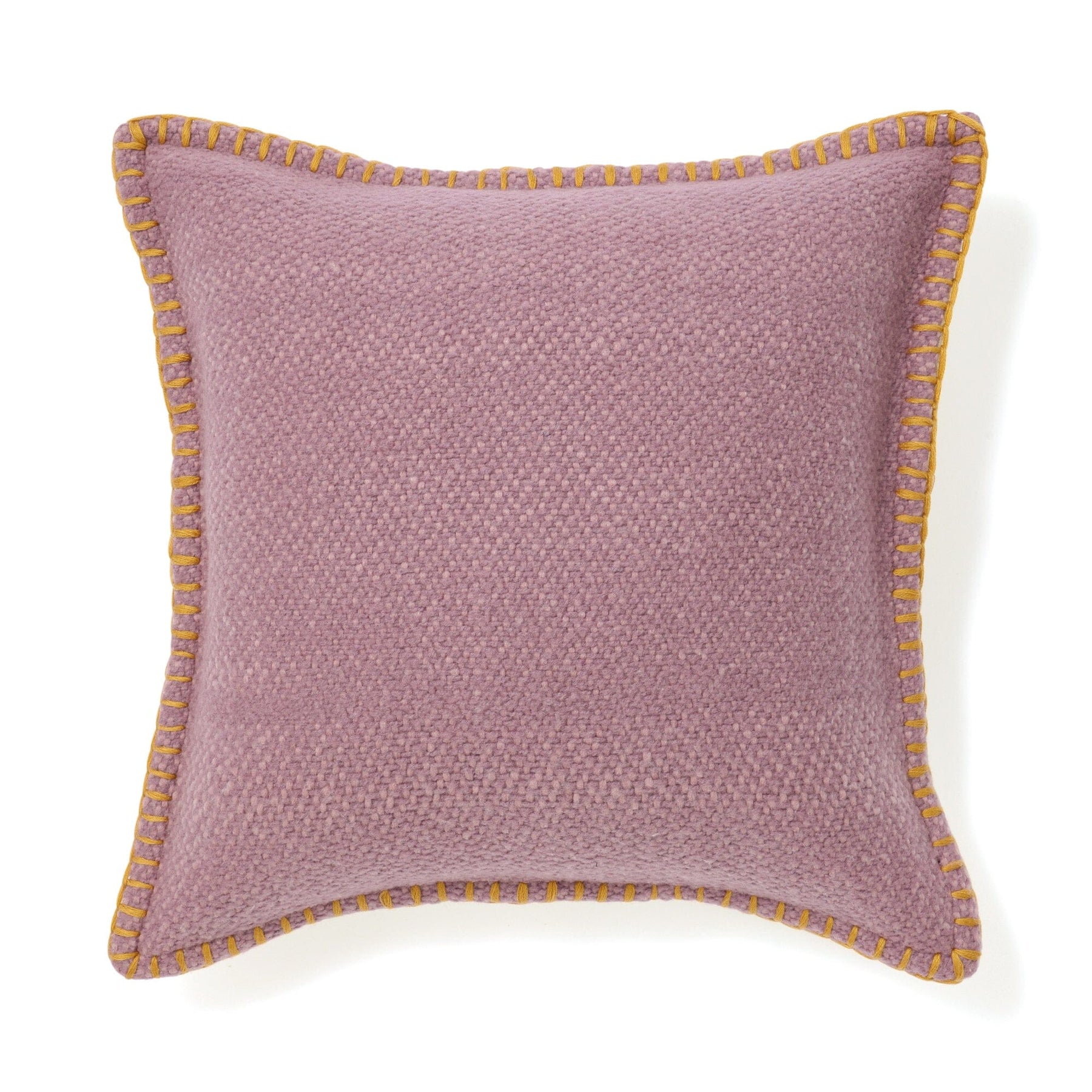 This cushion cover features a purple fabric with yellow edging stitching for a casually cute look.