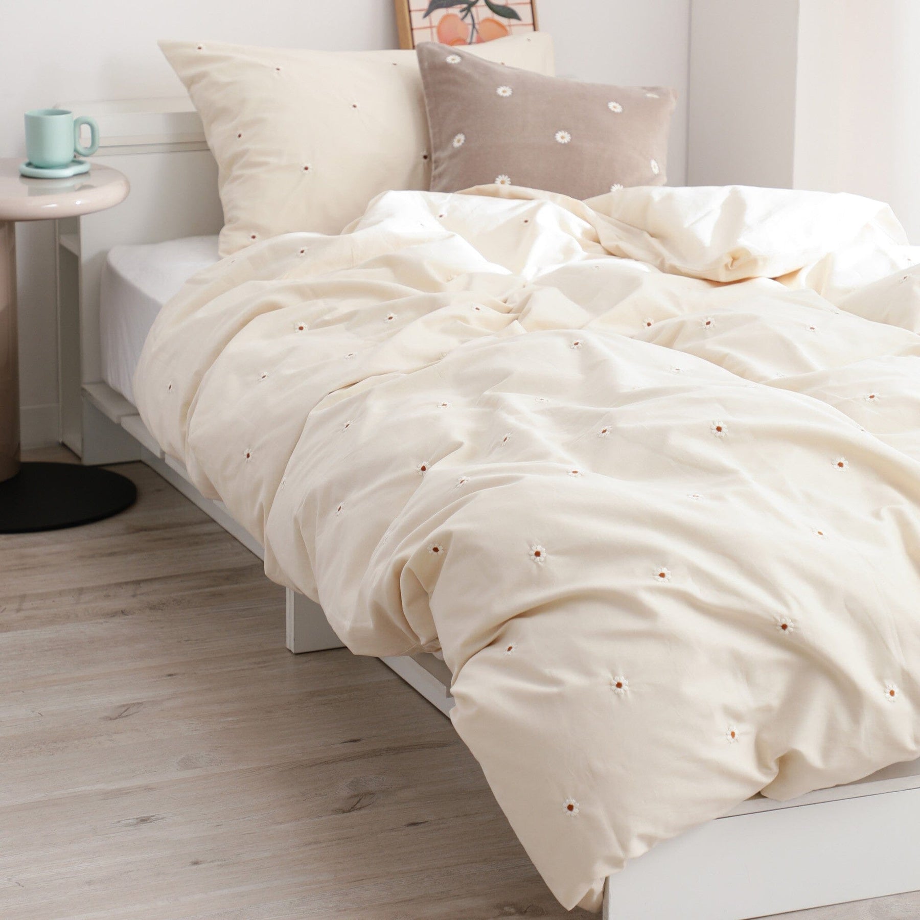 This duvet cover features a daisy motif embroidered on soft 100% cotton fabric.