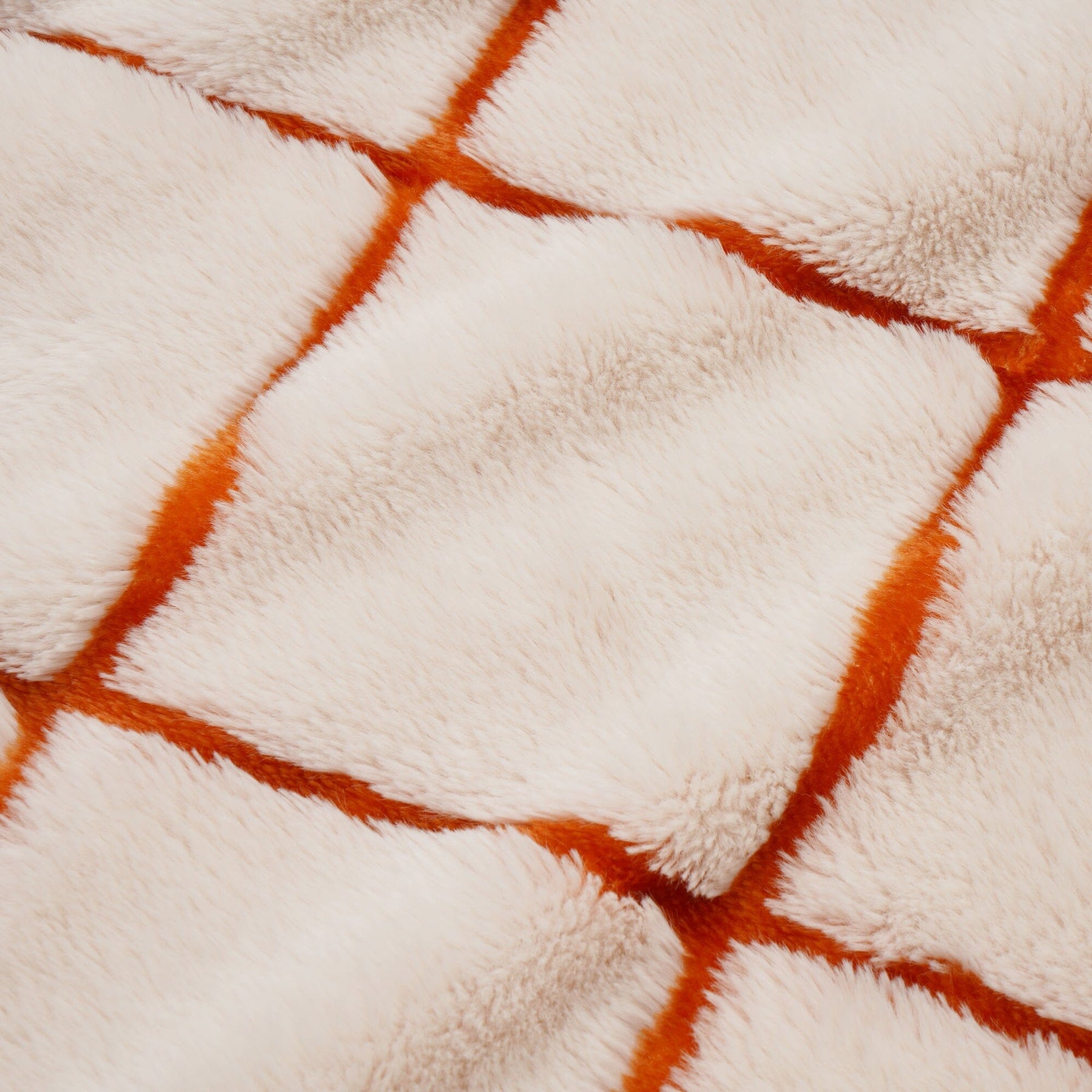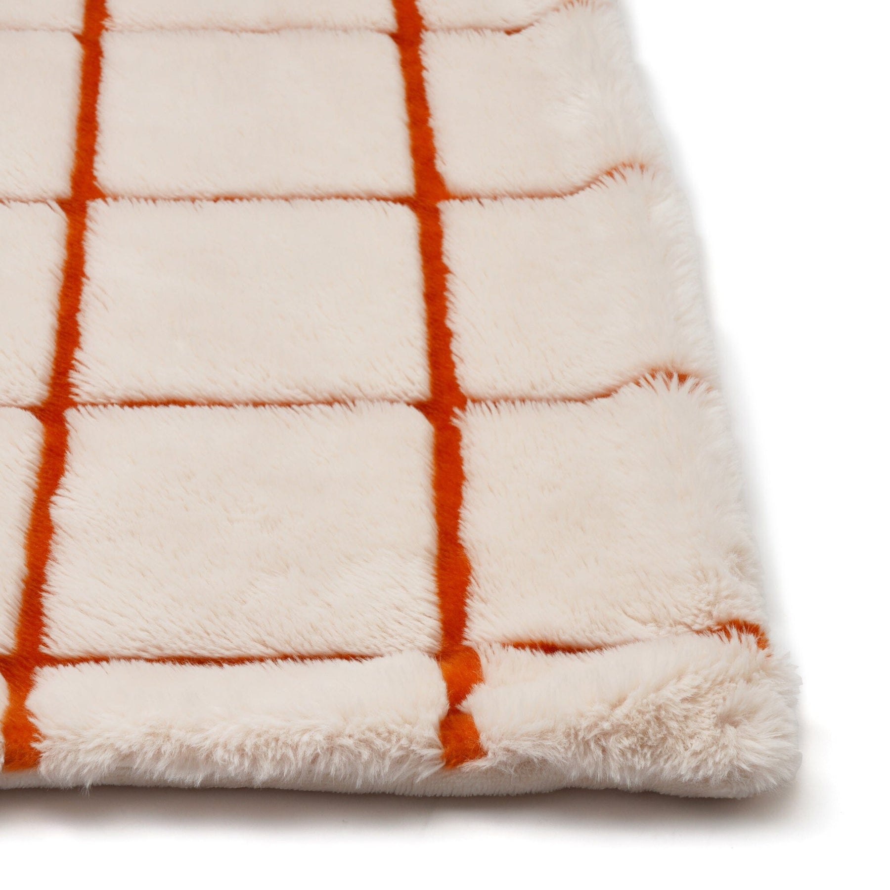 This plaid throw (lap blanket) is crafted from soft, comfortable fur. Its pop colors create a stylish design that blends seamlessly with any interior. The fur on the squares and plaid lines is of varying lengths, allowing the lines to peek out.