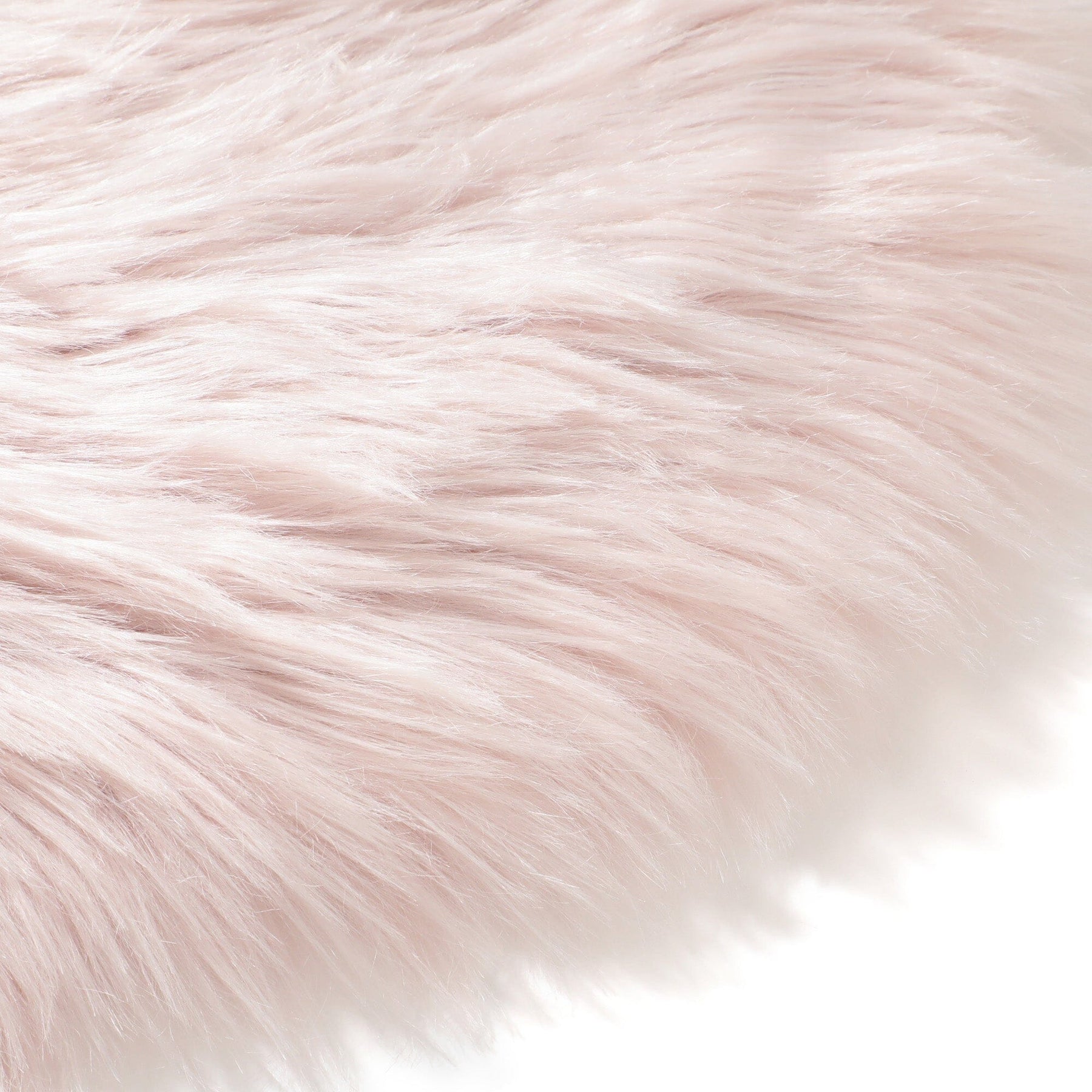 This rug features a wintery design made with faux fur, while retaining the shape of a sheepskin rug.The long, voluminous fur of the sheepskin-like material makes it soft and fluffy to the touch. The densely packed fur gives it a lustrous sheen, creating an elegant and luxurious impression.