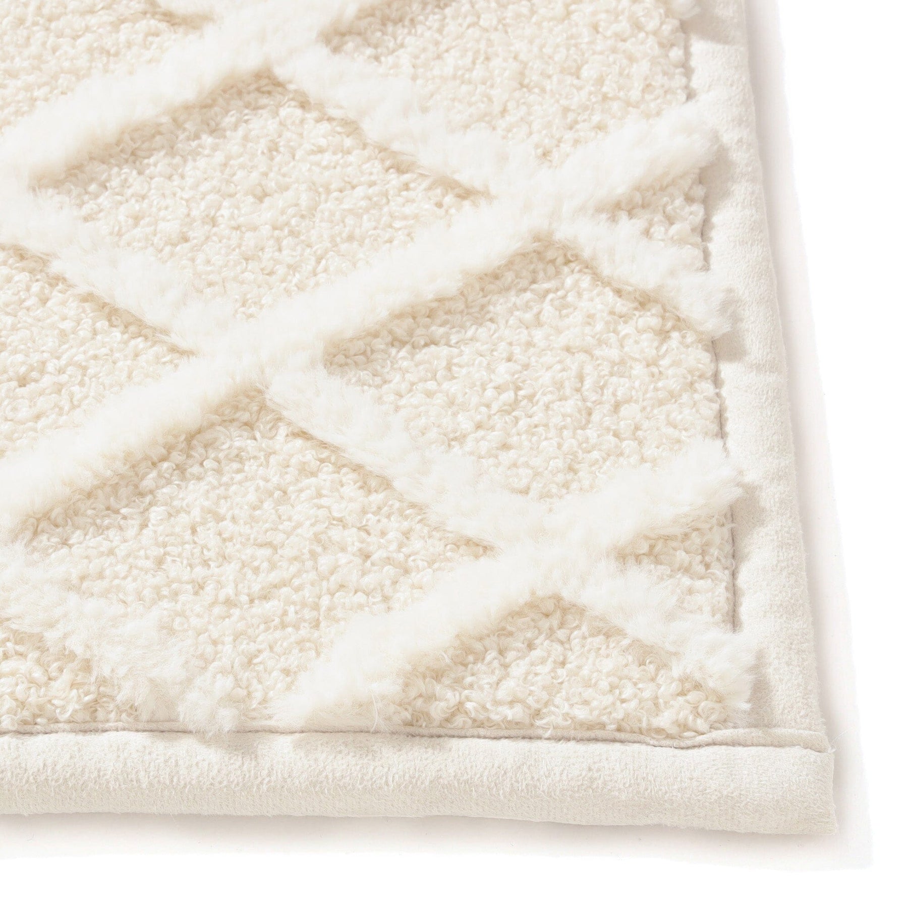 This heated carpet rug has an appealing three-dimensional design that combines soft shaggy and loop textures.