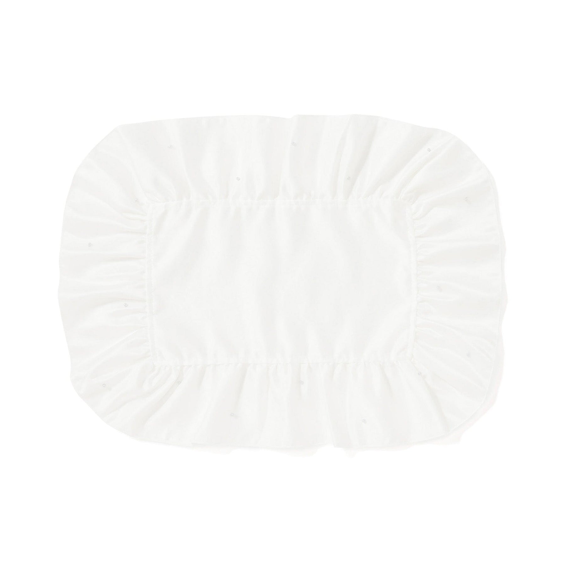 This lunch mat sparkles with small pearls.The wide, soft ruffles and lustrous fabric enhance its natural cuteness, adding a touch of glamour to any dining table.