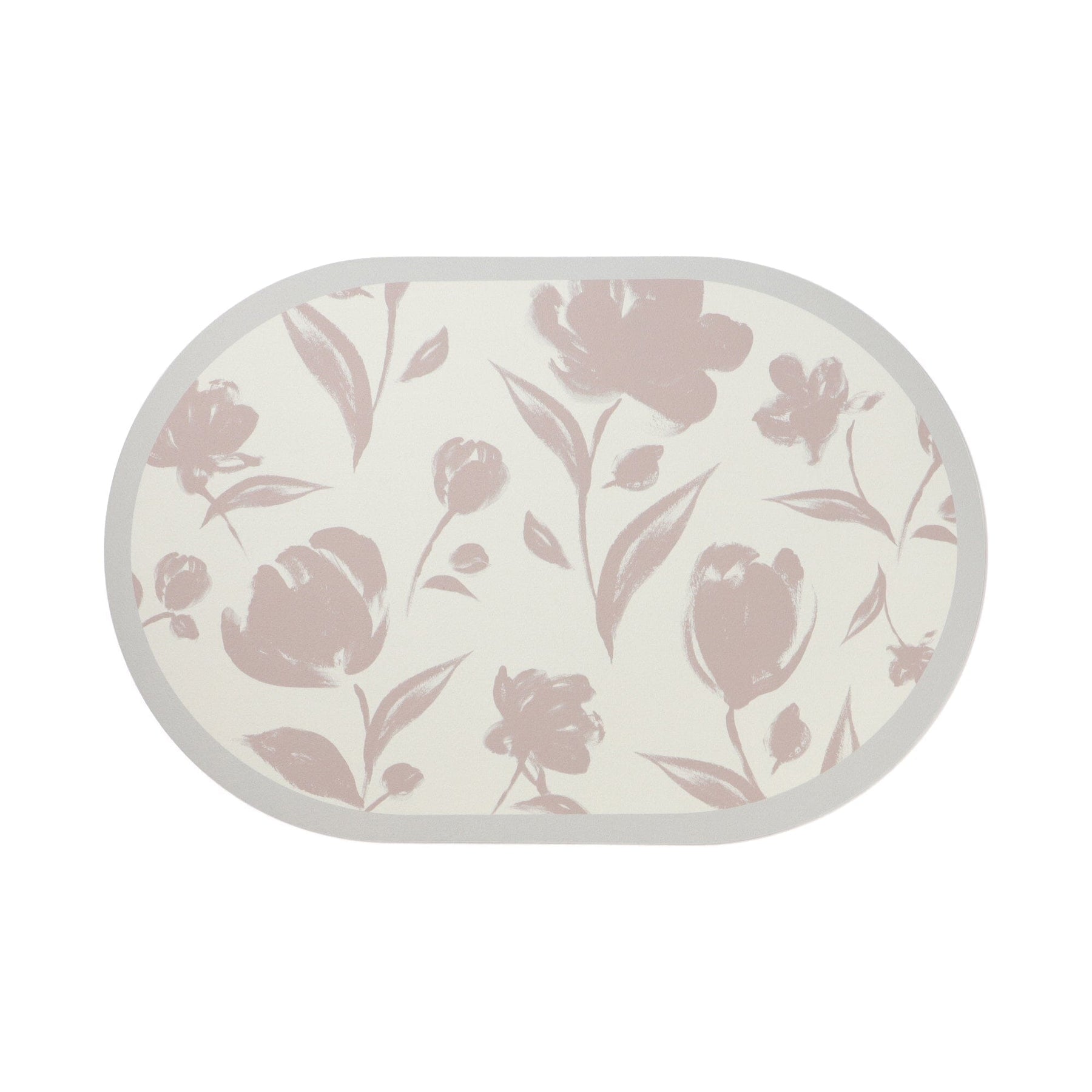 Diatomaceous Earth Soft Bath Mat Oval Big Flower Beige