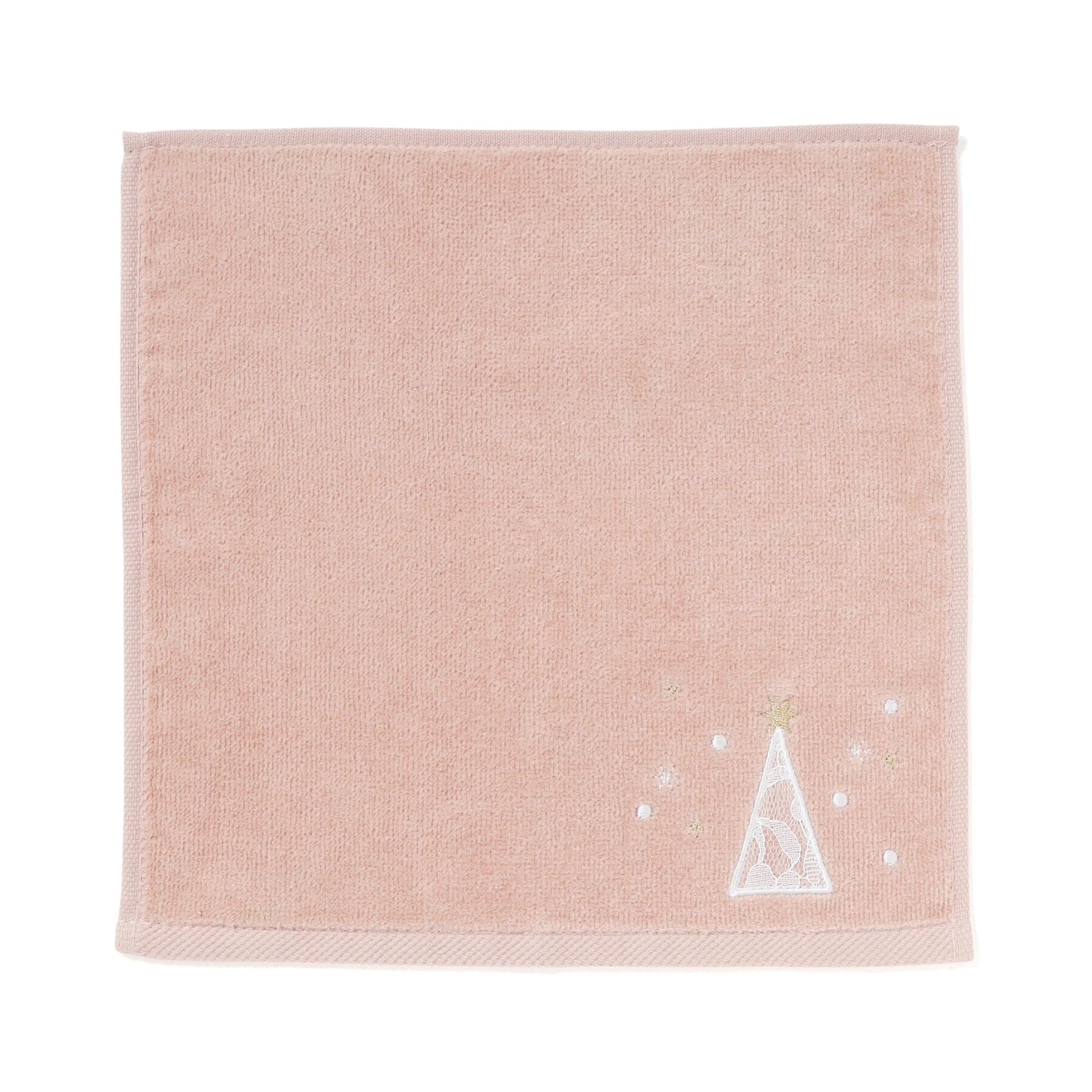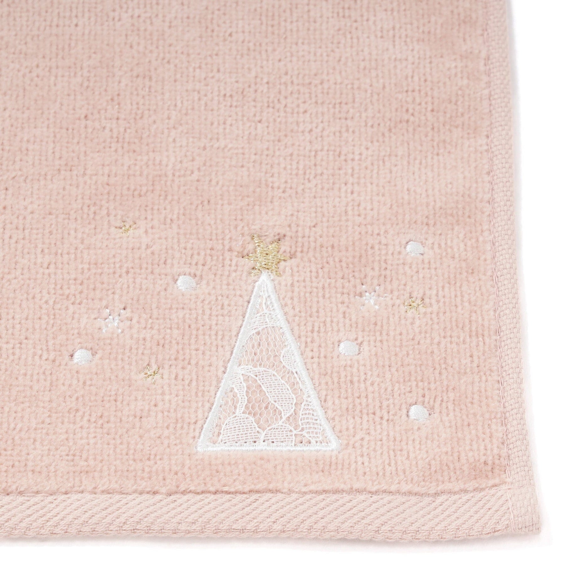 This handkerchief towel features antibacterial and deodorizing properties.The adorable design features a white lace tree and glitter thread embroidery.