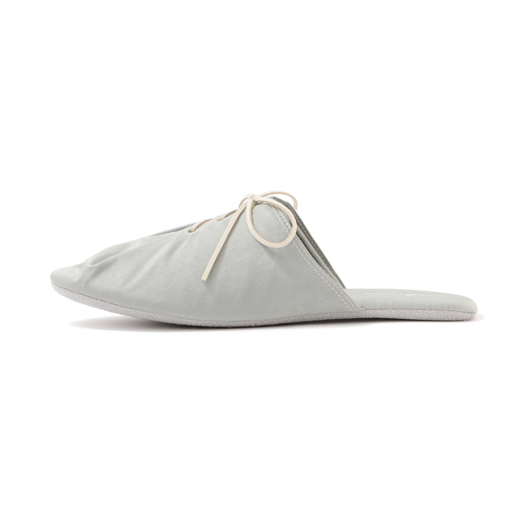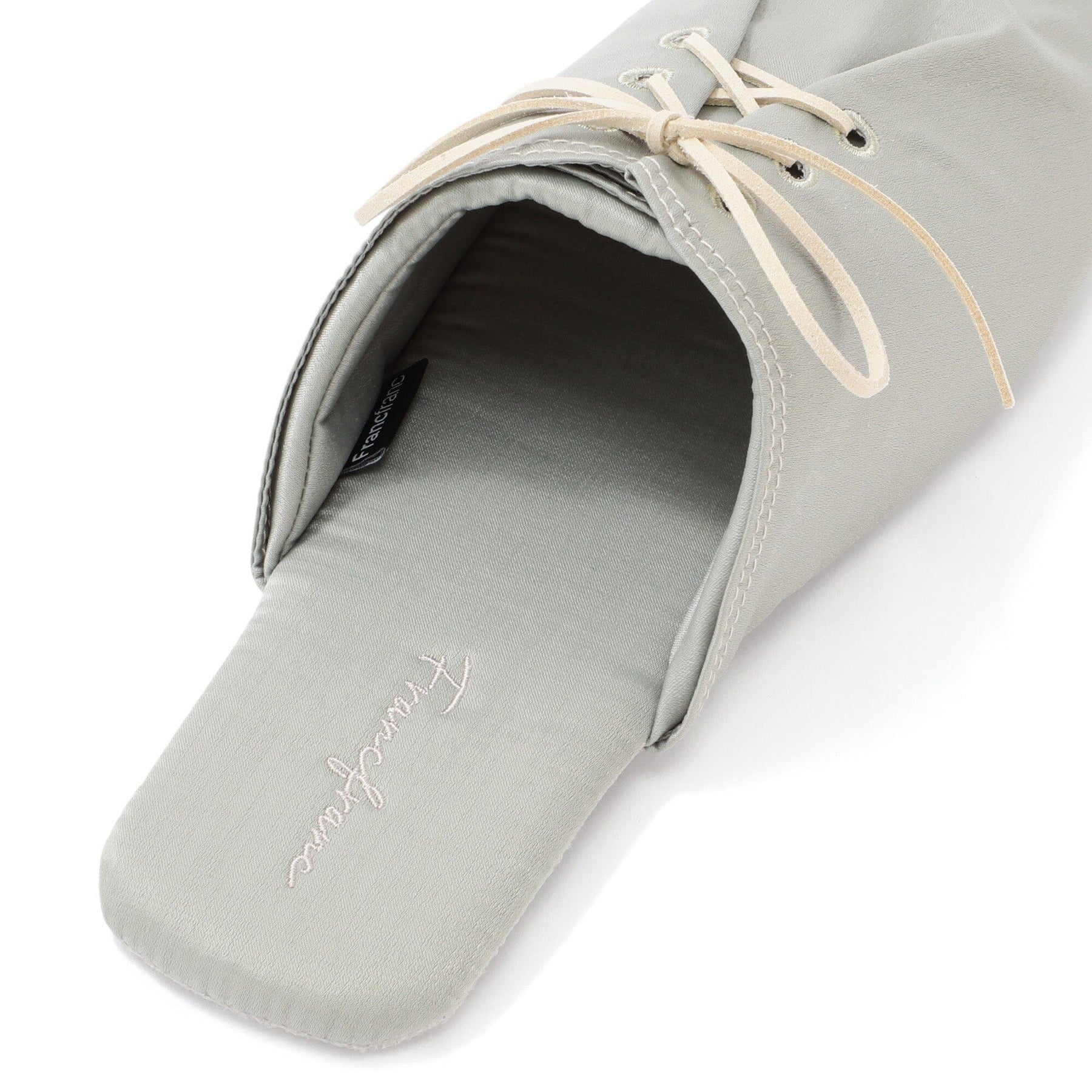 These are room shoes made of satin and lace-up fabric.The perfect design for autumn pajama coordination.
