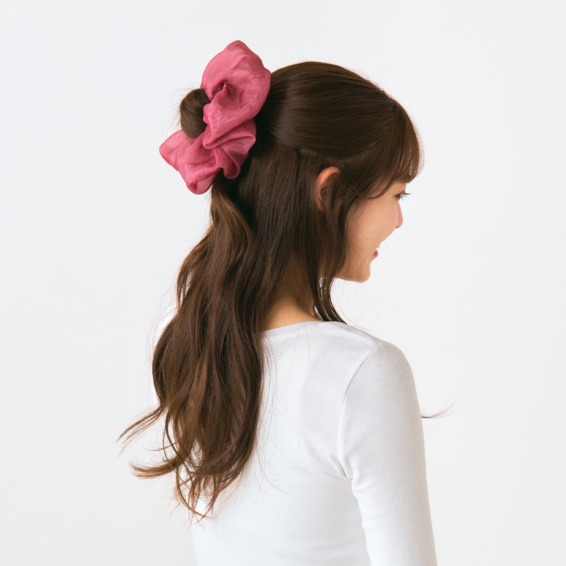 This cute scrunchie features a muted color, sheer material, and a generous size.