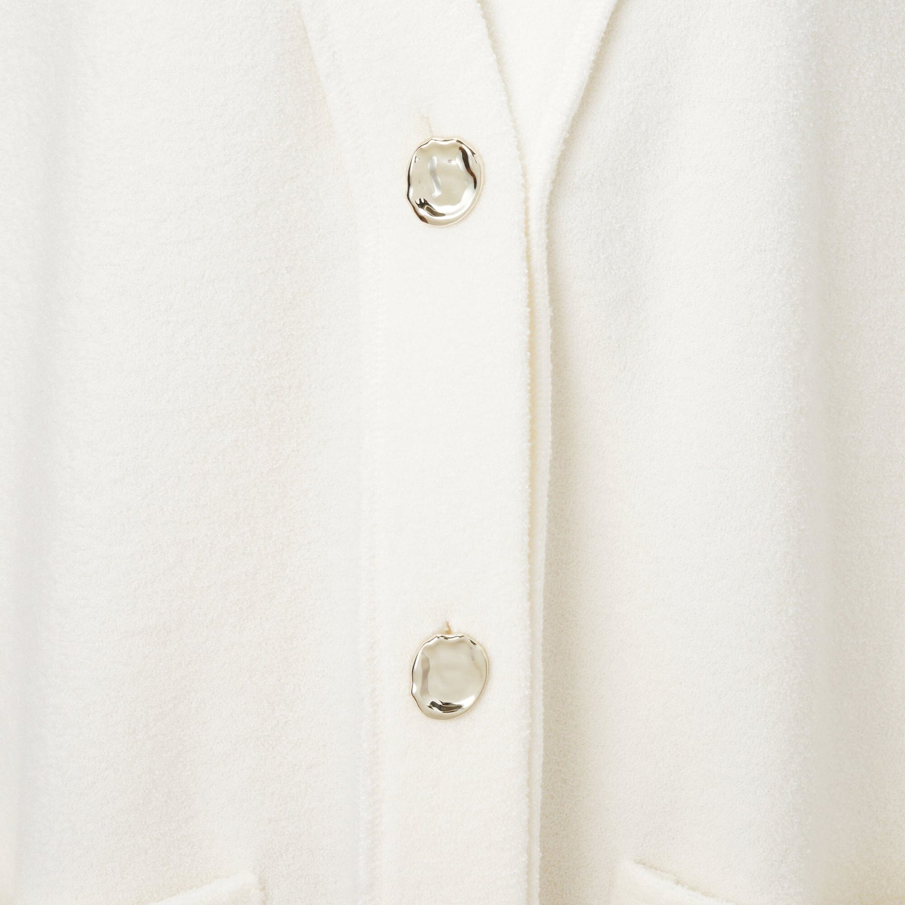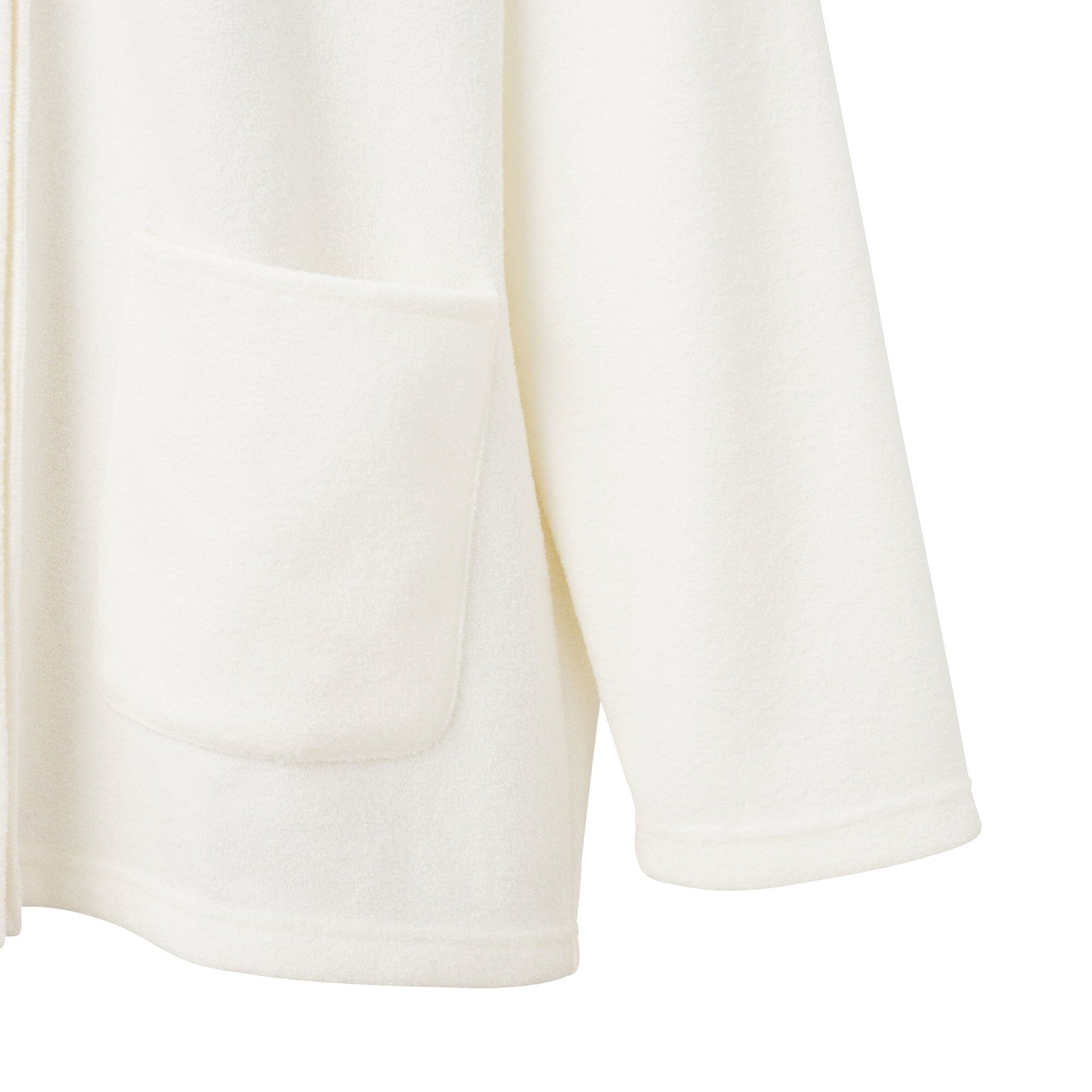 This cardigan is made from a soft, towel-like pile material.The material is suitable for all seasons and is recommended as a casual jacket.