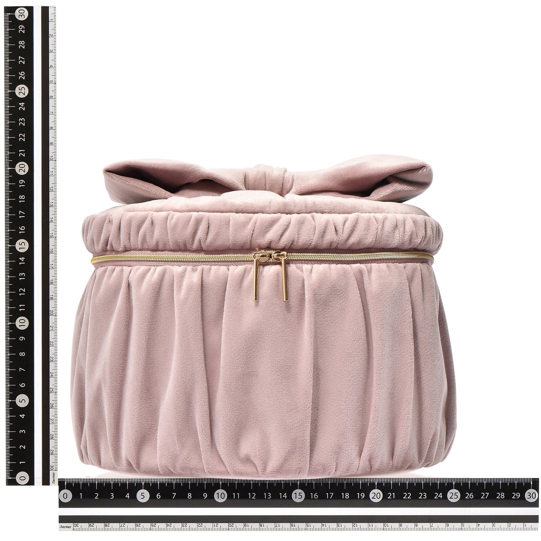 This pouch features a large ribbon and is crafted from lustrous velour fabric.The adorable ribbon motif and subdued color scheme are perfectly balanced, making it an easy-to-wear design.