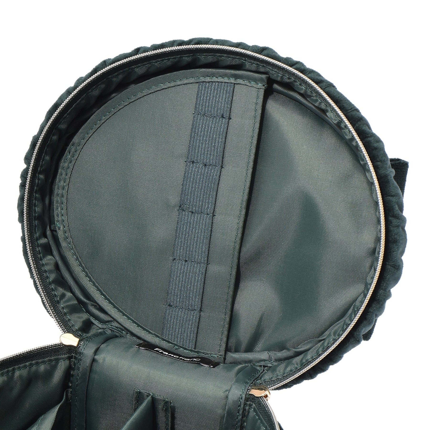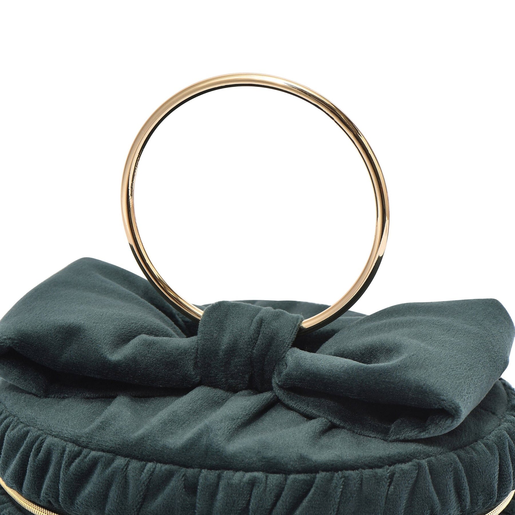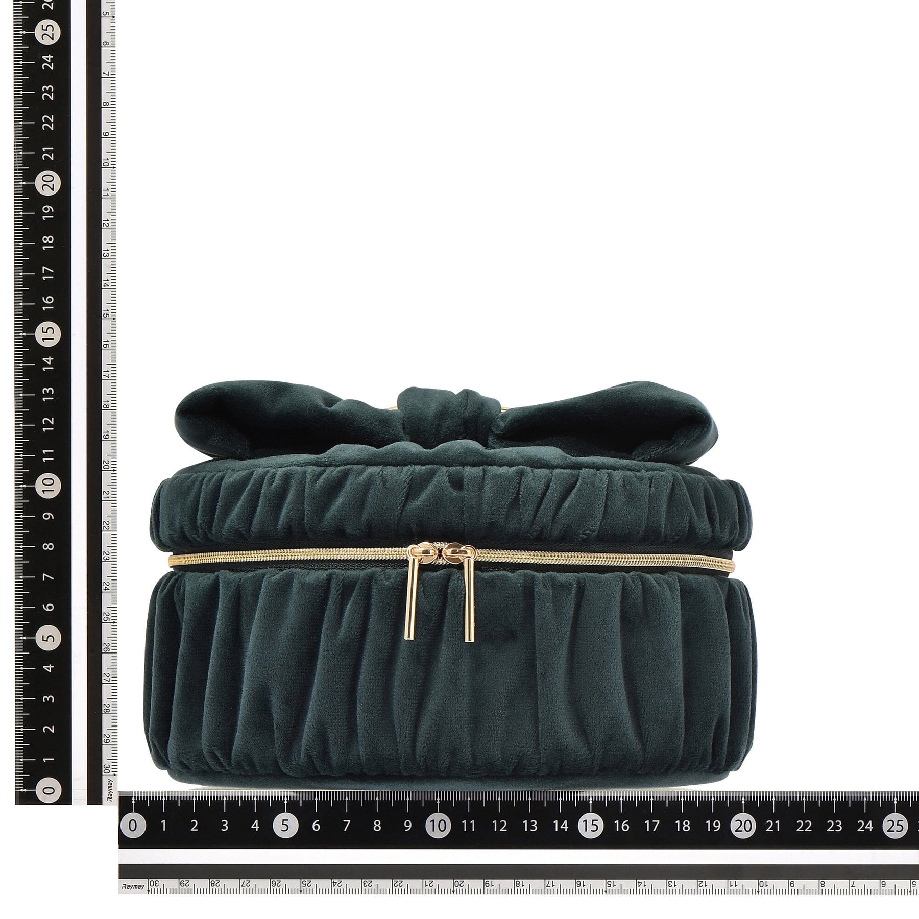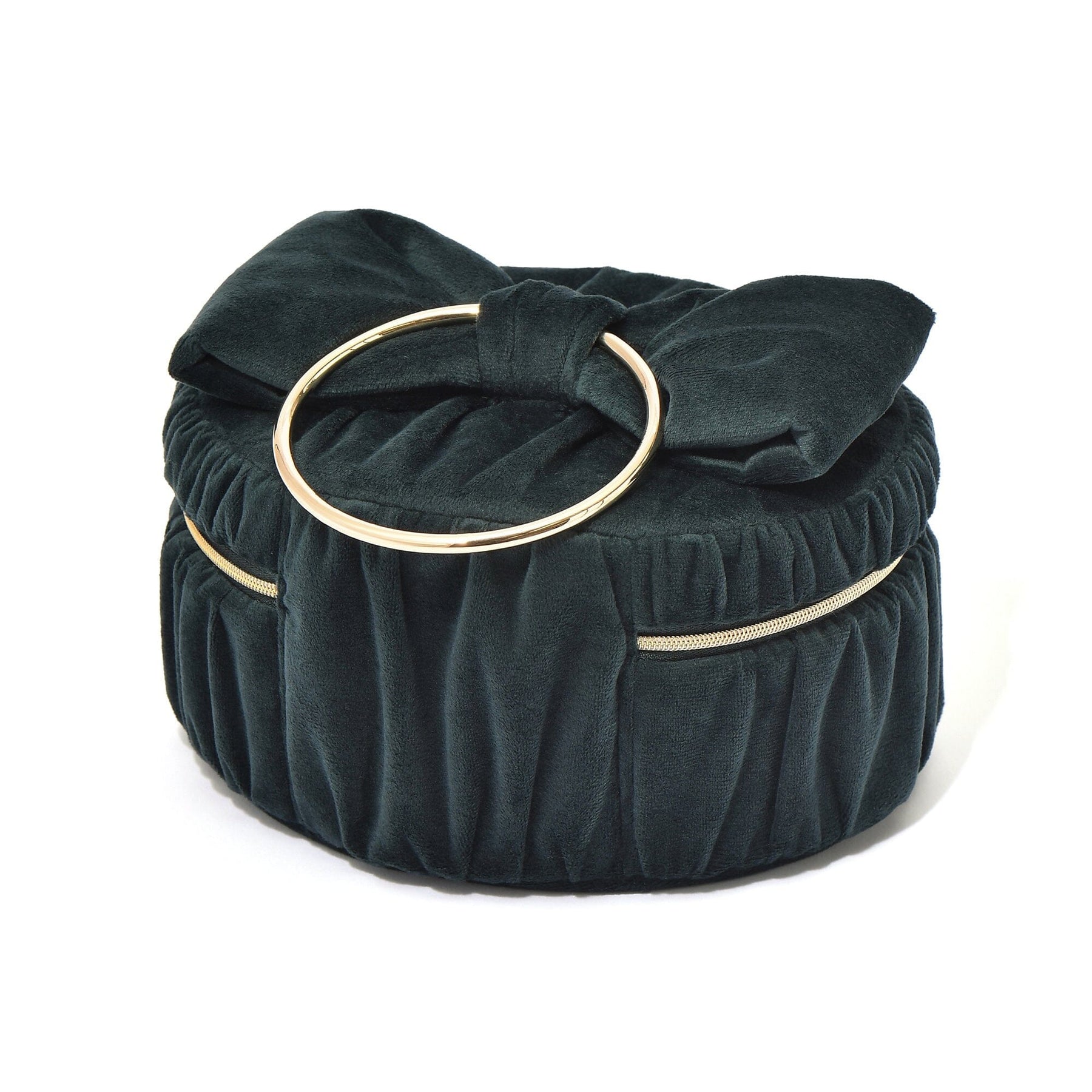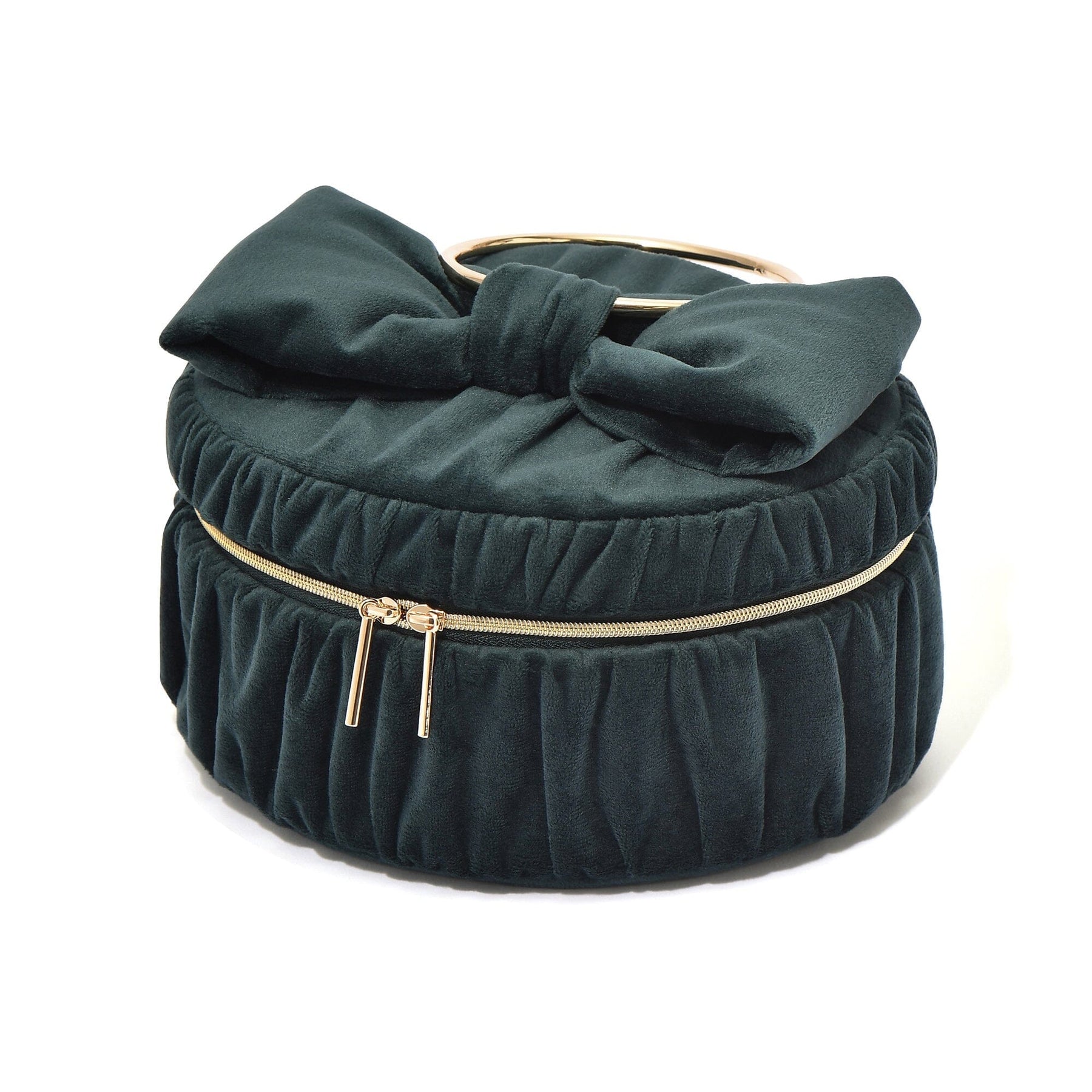 This pouch features a large ribbon and is crafted from lustrous velour fabric.The cute ribbon motif and subdued color scheme are perfectly balanced, making it an easy-to-wear design for everyday use.