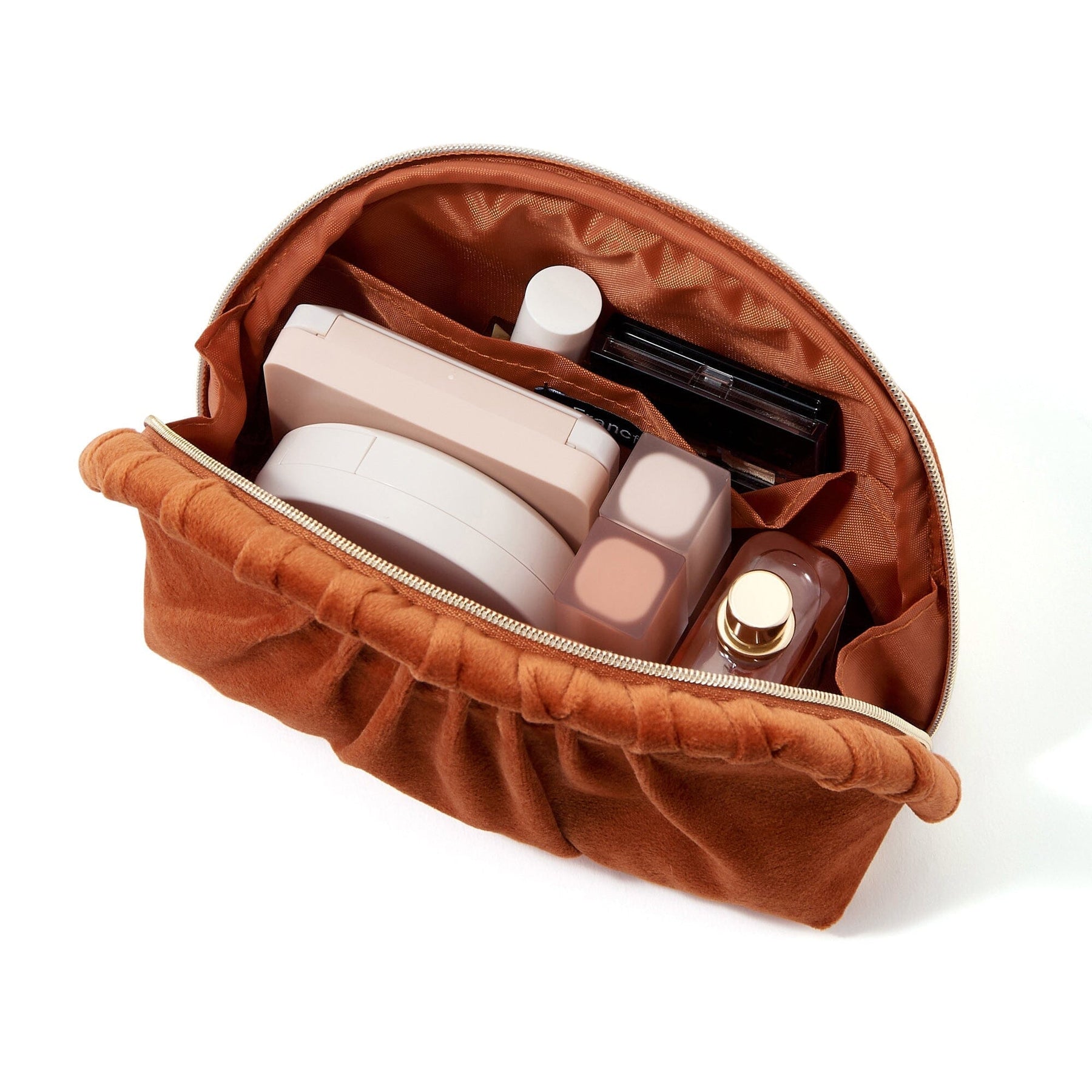 這款別緻的小袋在光滑的絲絨面料上飾有褶皺。