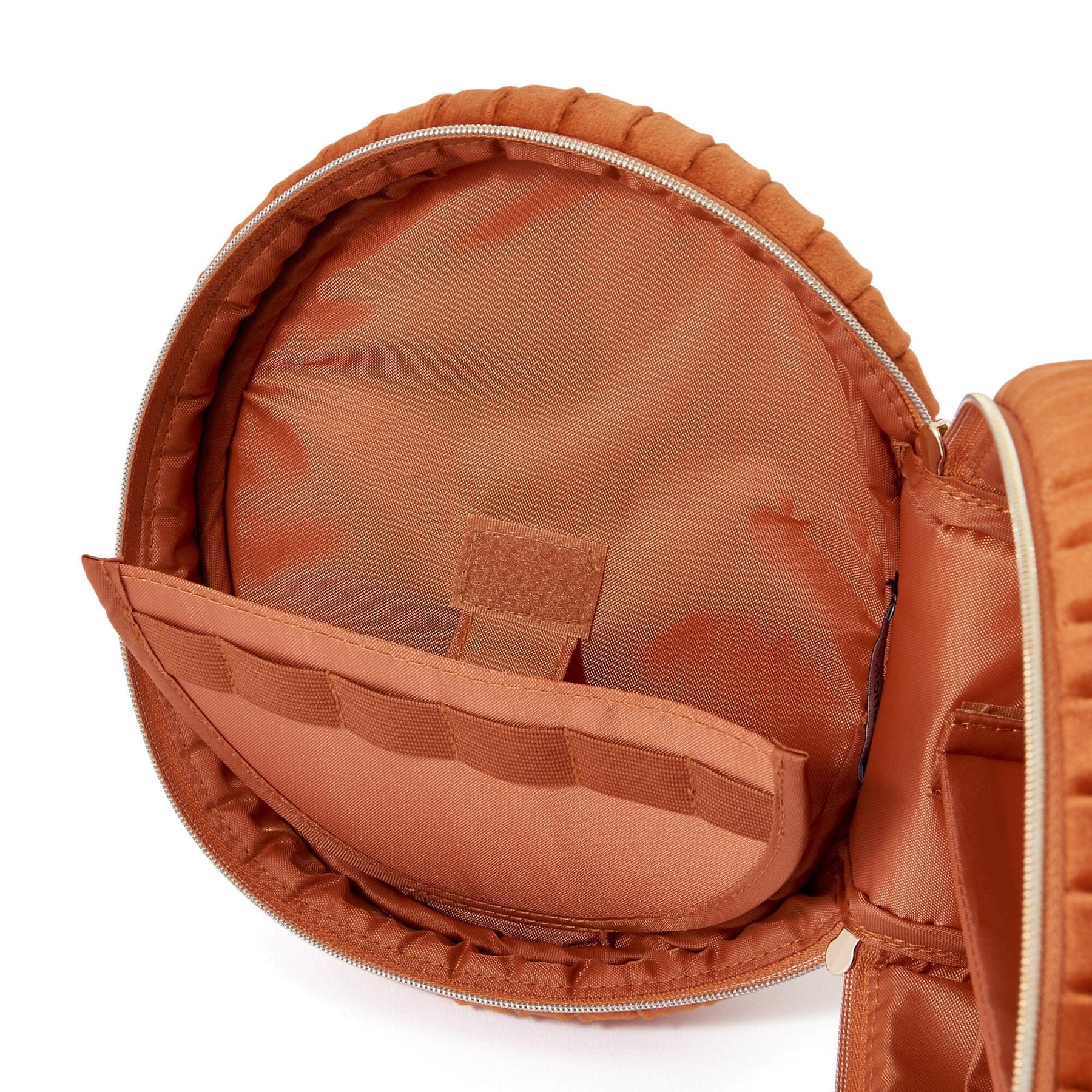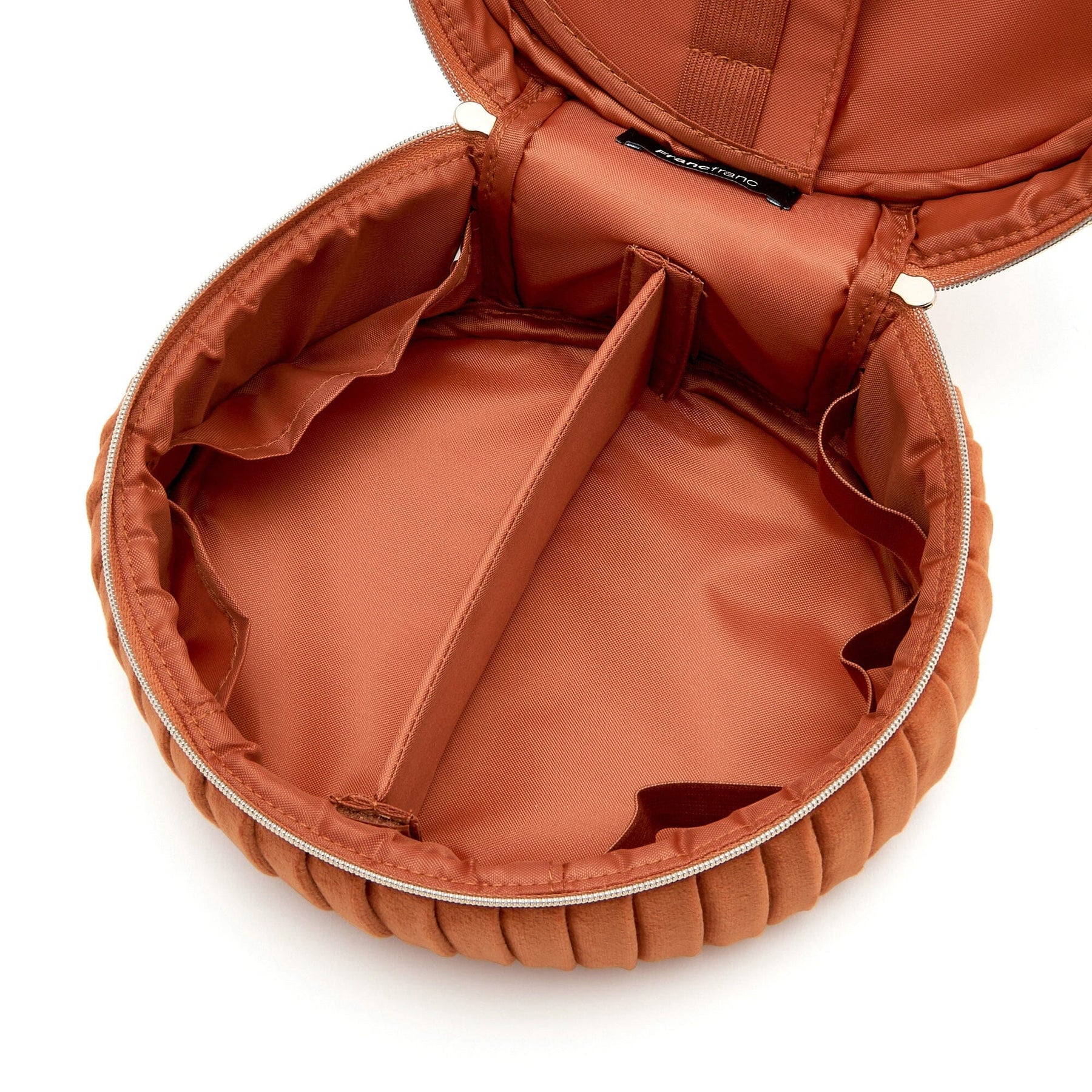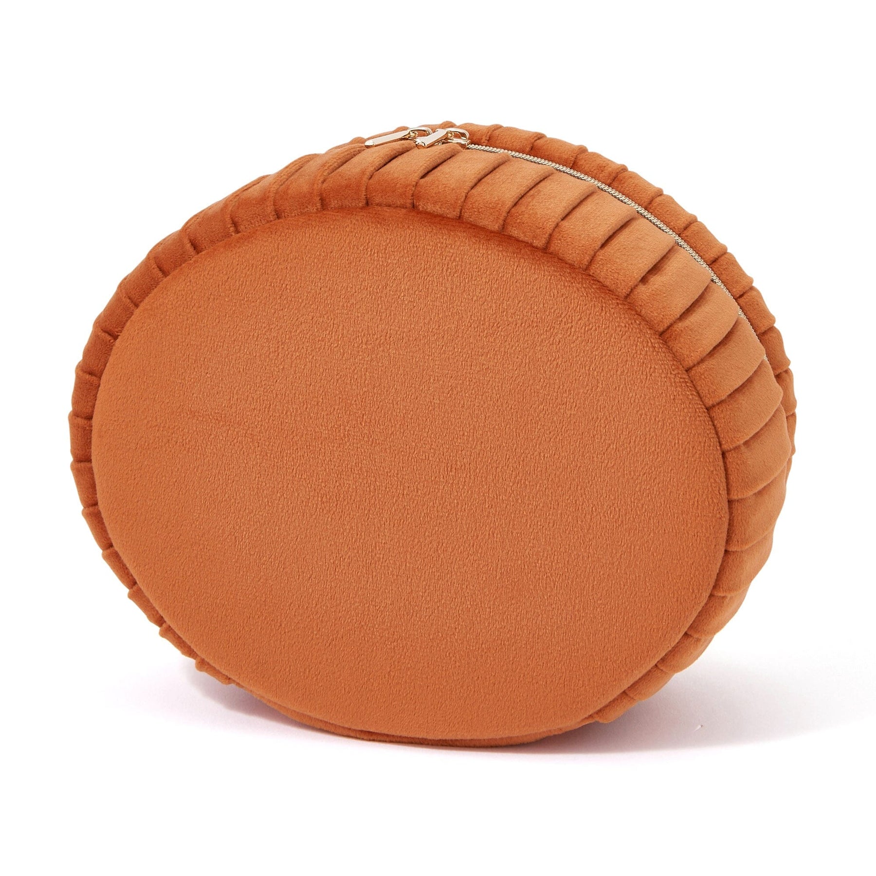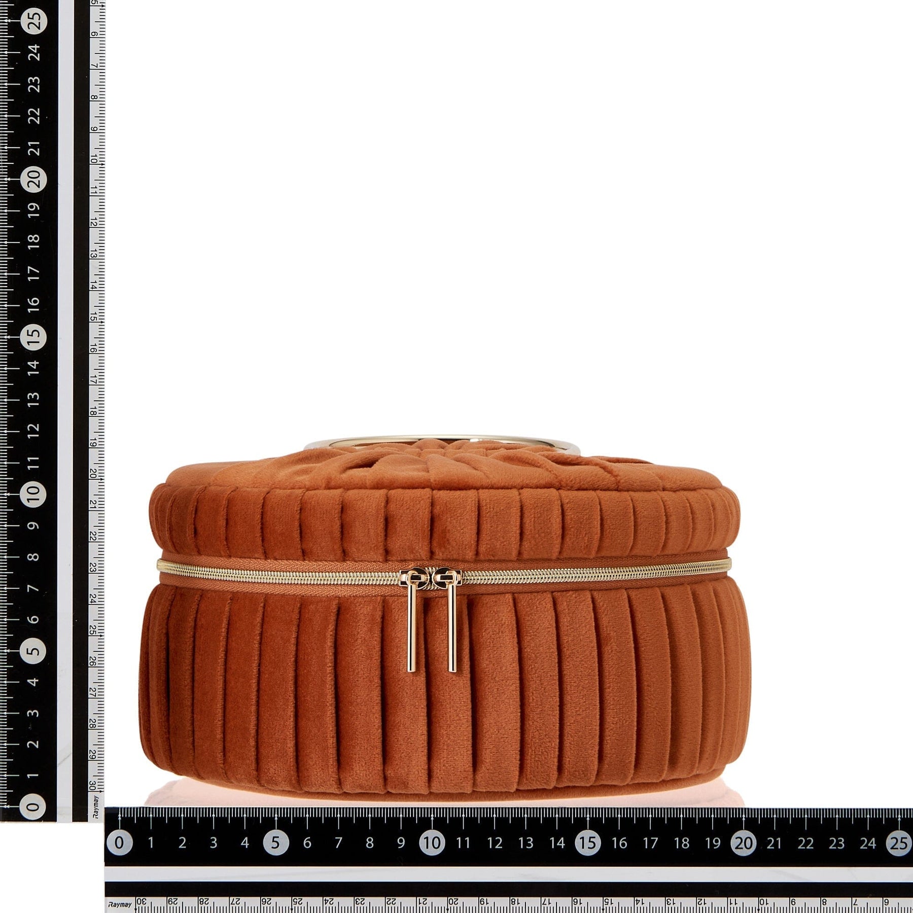 This chic pouch features tucked pleats on glossy velour fabric.With its muted autumn colors and design, it's recommended for those who appreciate a more mature look.