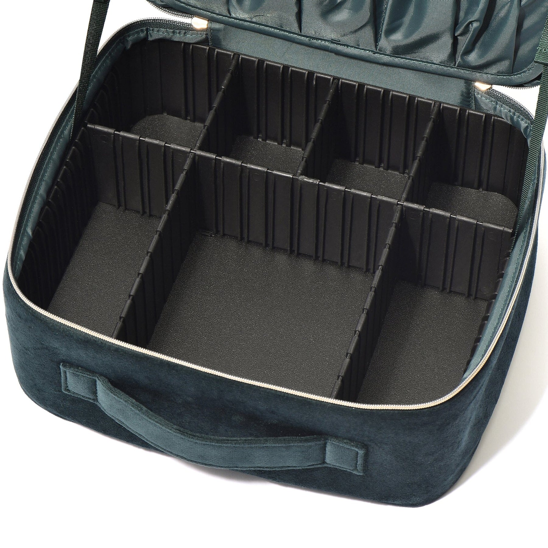 The internal dividers are adjustable, allowing you to freely adjust them to fit your makeup tools.