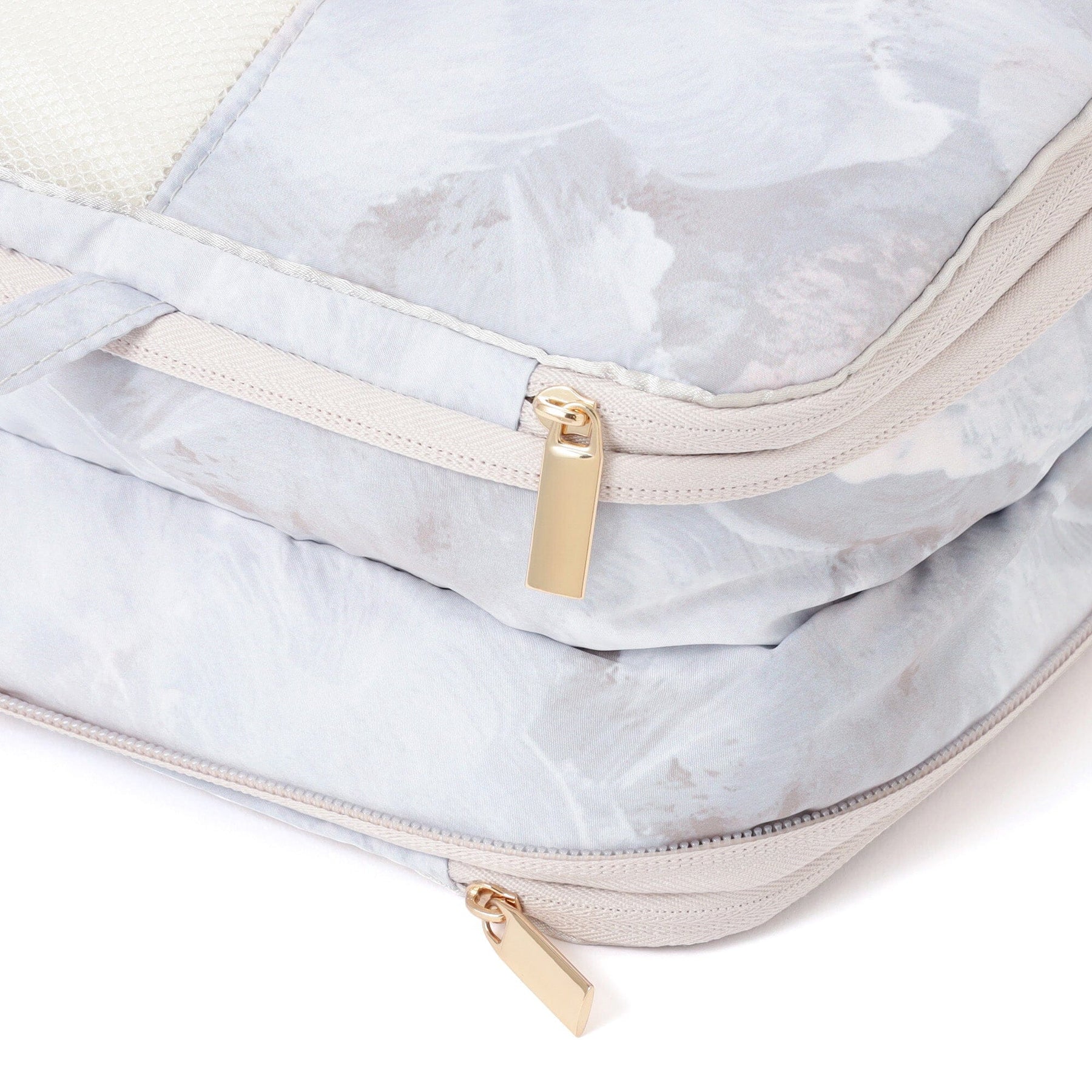 Simply close the zipper on the outside of the organizer once and a half times to compress the clothes inside.