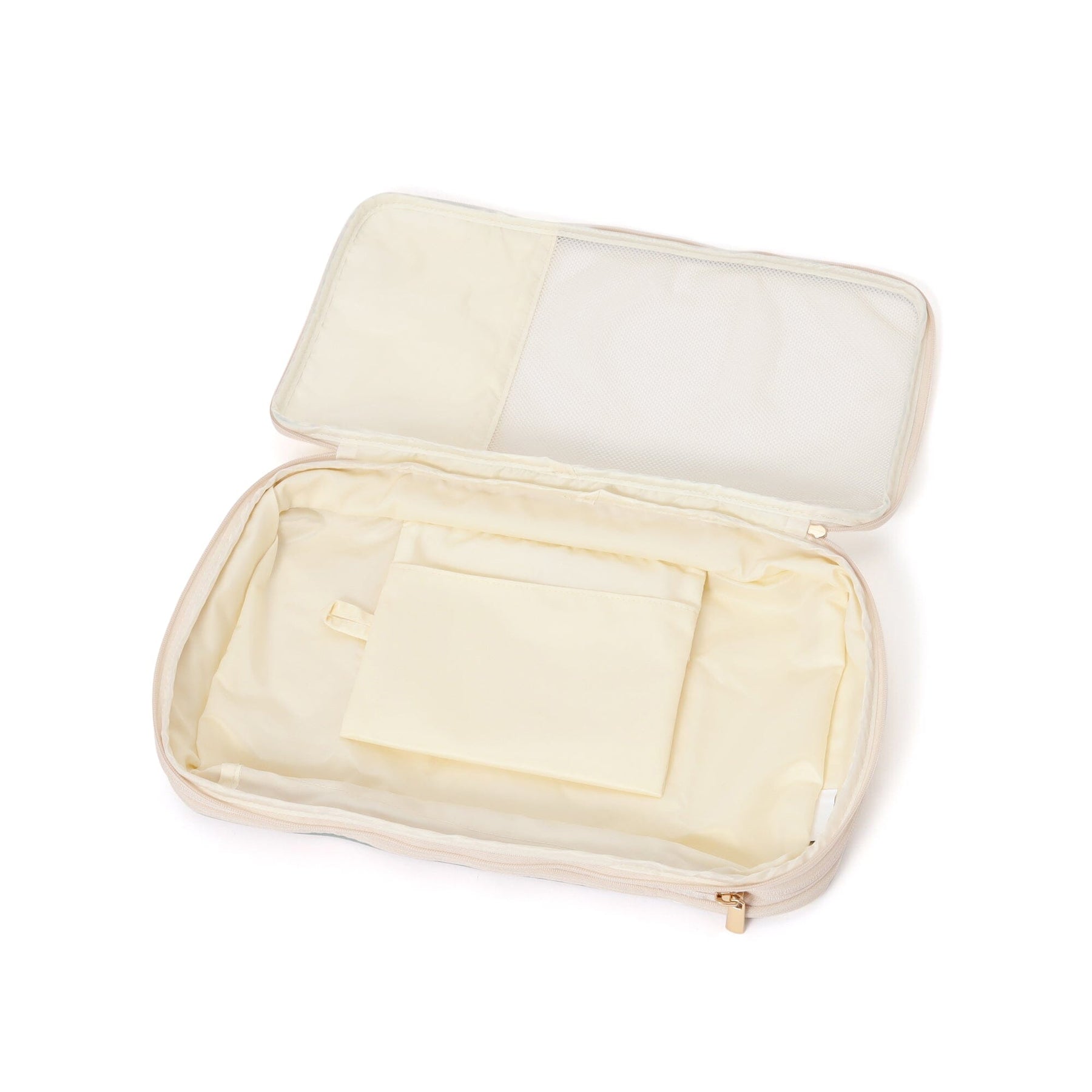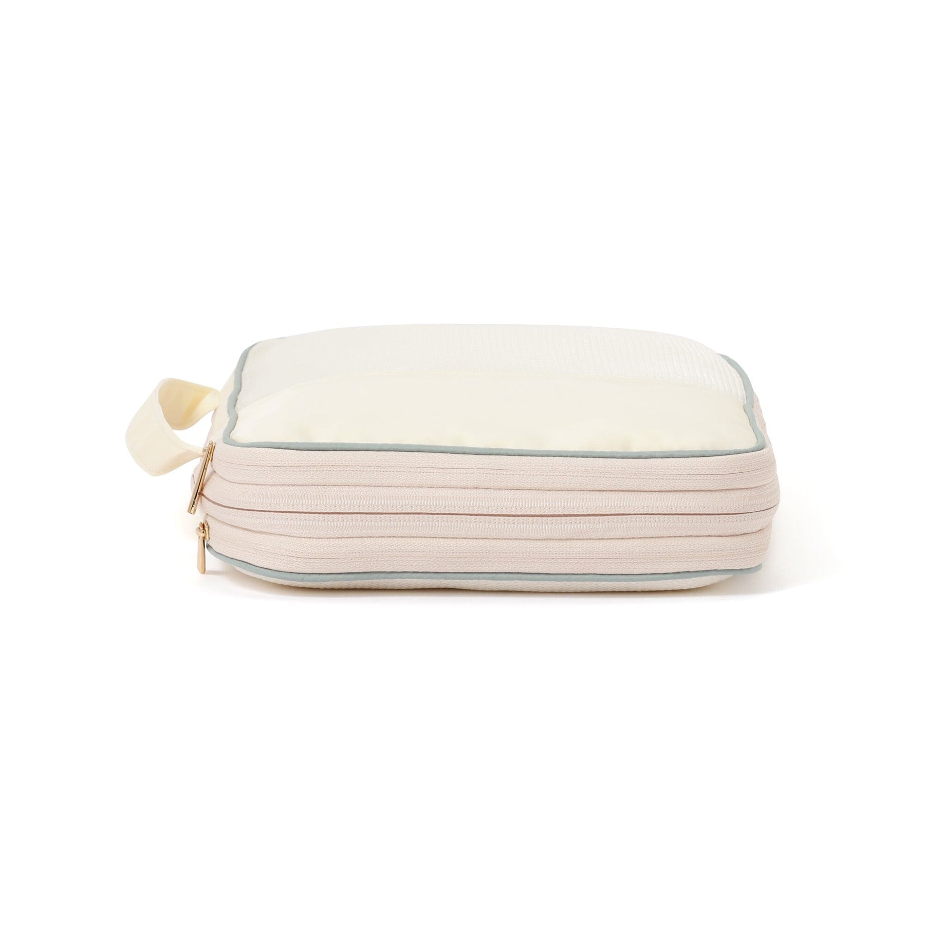 Simply close the zipper on the outside of the organizer one and a half times to compress the clothes inside.