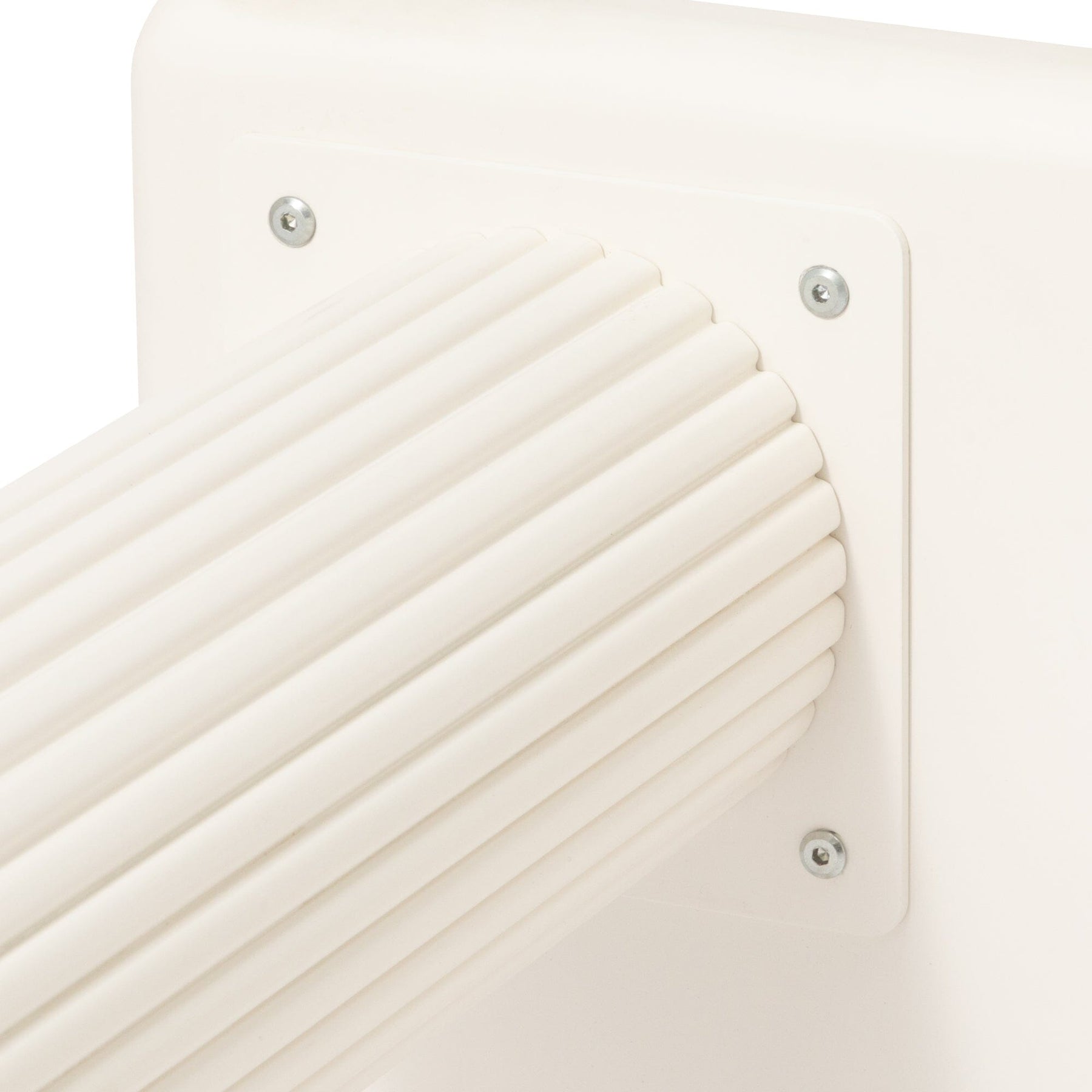 The matte white finish creates a relaxed feel, while the wall-mounted oval shape saves space while still providing a spacious dining experience.