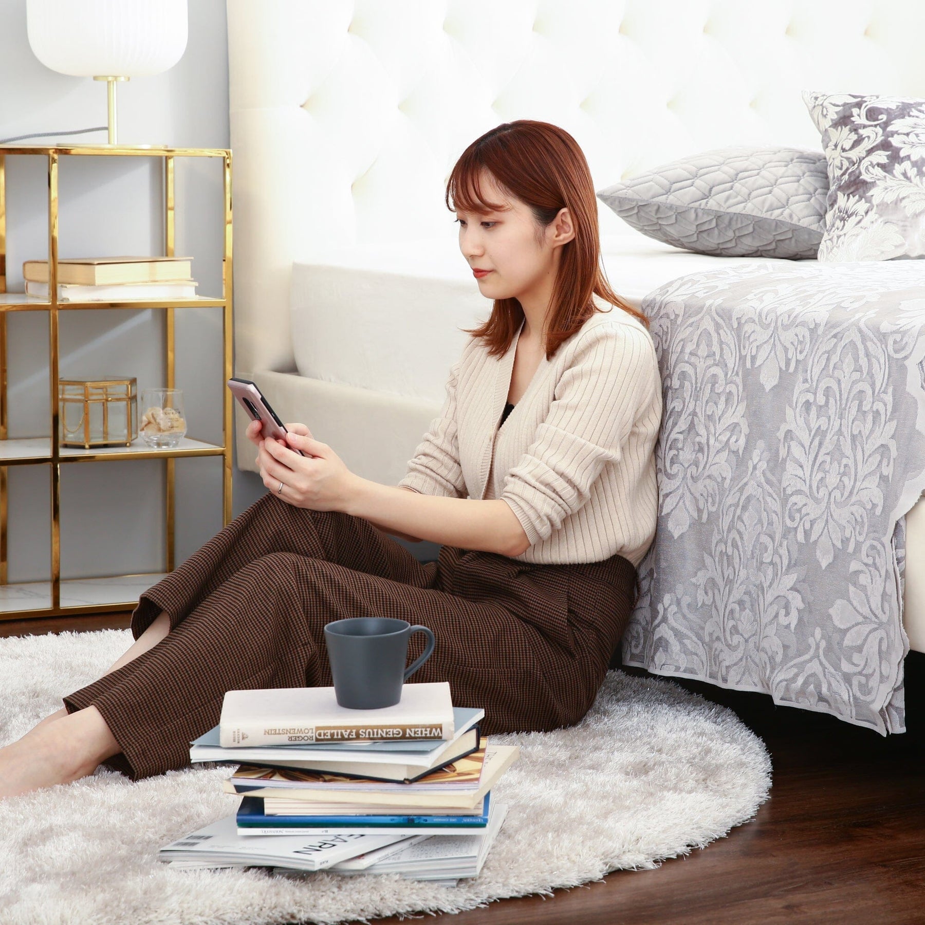 Diamond-shaped indentations create subtle lines, resembling a quilted design. Pair it with a silk comforter or shiny fabric to create a resort hotel-like atmosphere.