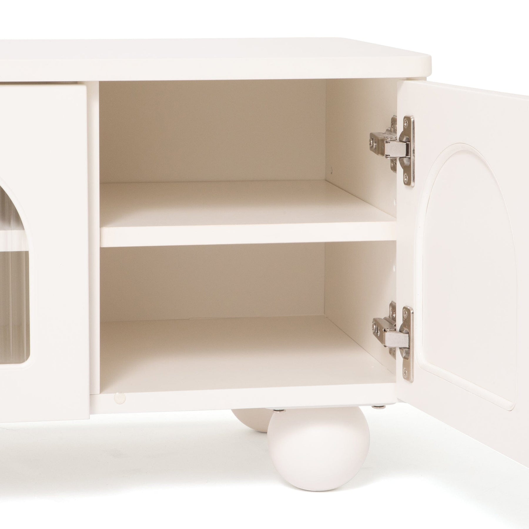This TV stand features striking semicircular doors and rounded corners, creating a unique and trendy look.