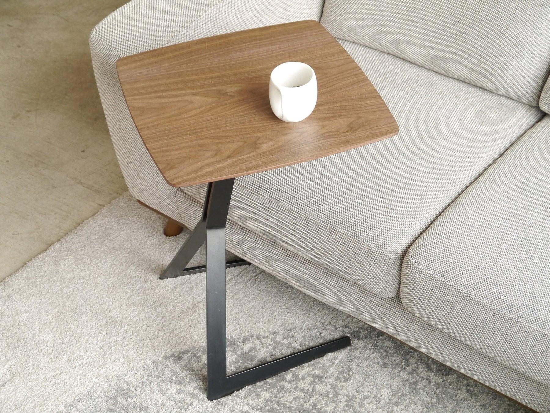 ■A light-weight side table that can be inserted into a sofa. ■The walnut veneer and matte black steel legs create a luxurious feel.