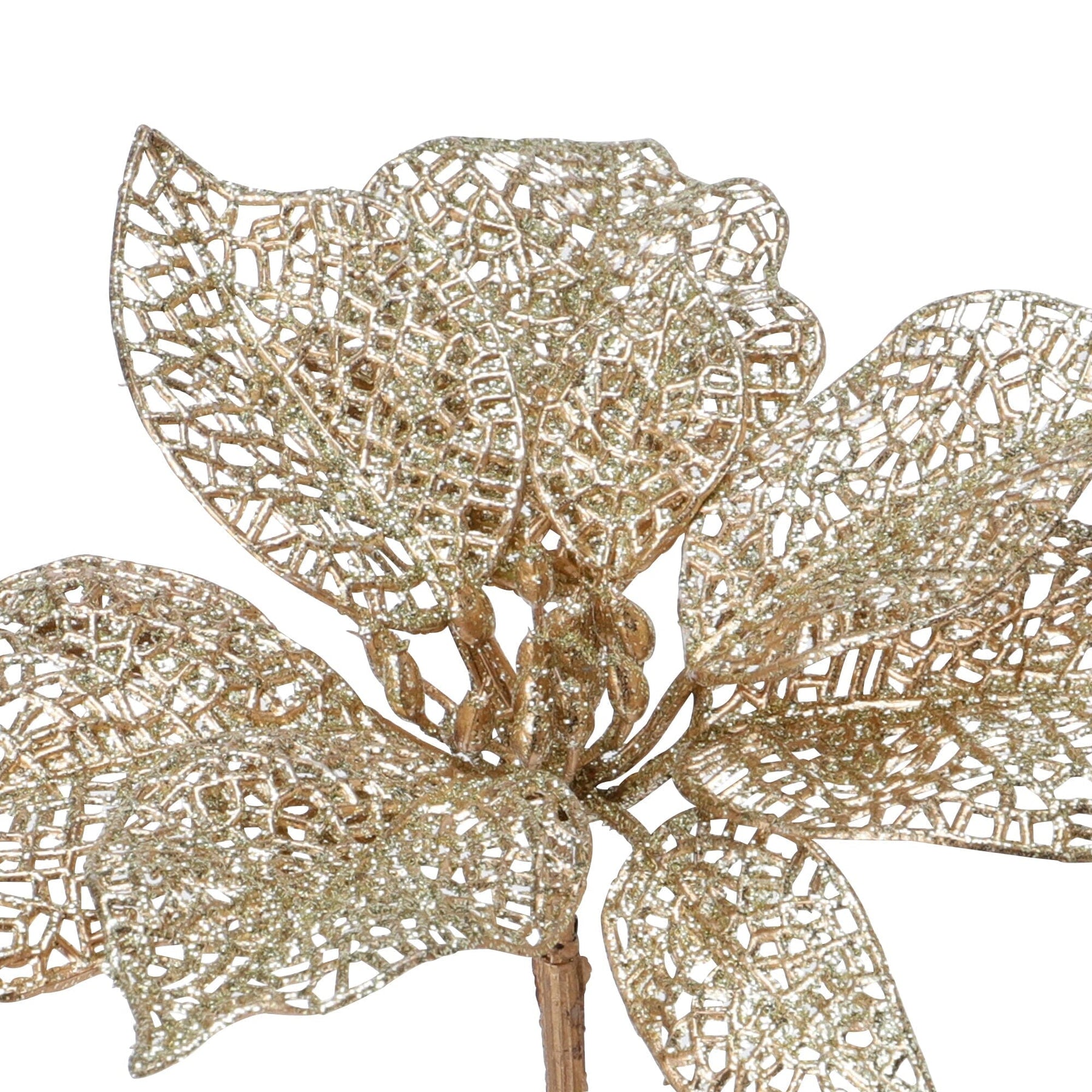 A gorgeous gold-plated poinsettia art plant.Simply coordinate it with your existing flowers to instantly create a holiday mood.