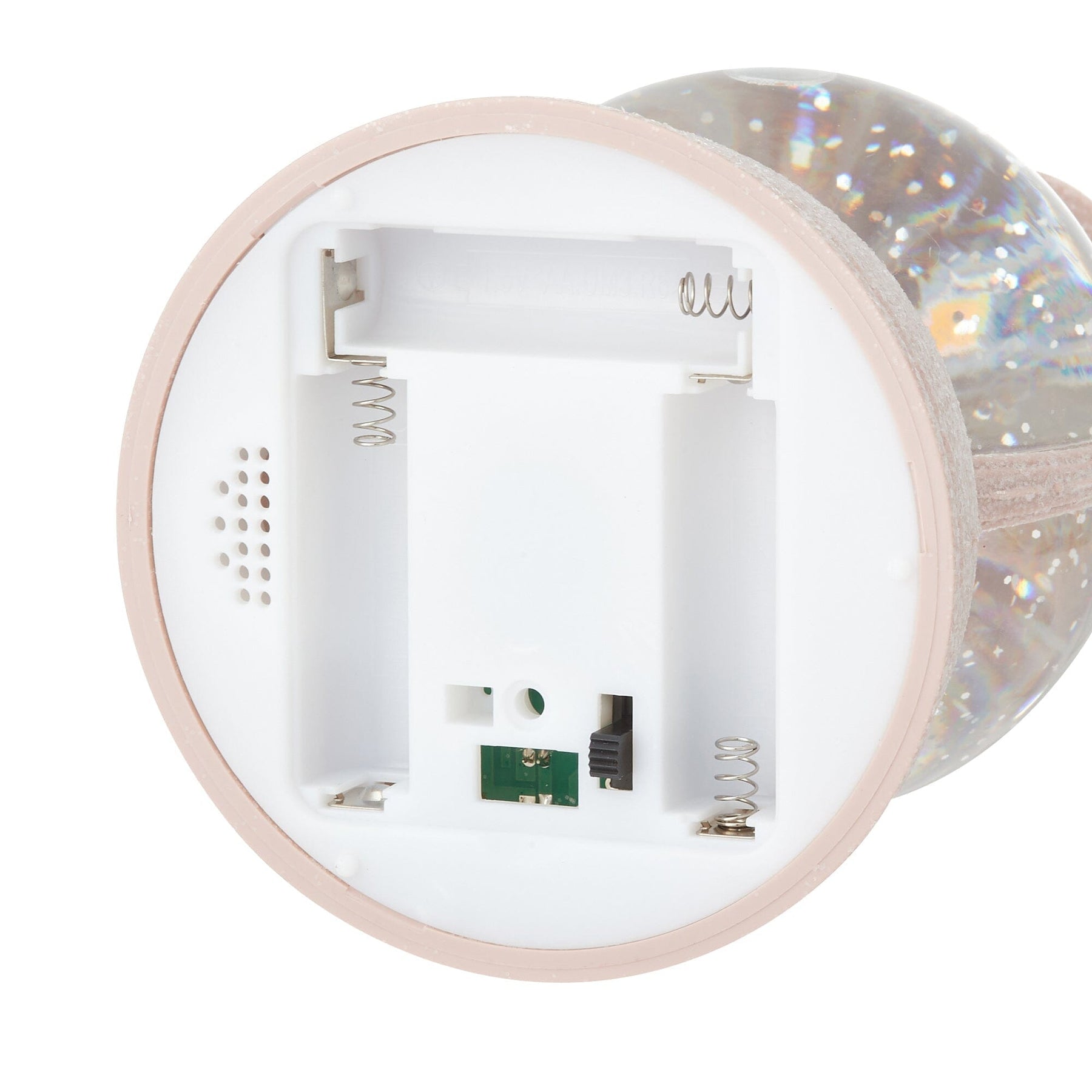 當你按下開關時,燈會亮起,亮粉會自動飄浮起來。