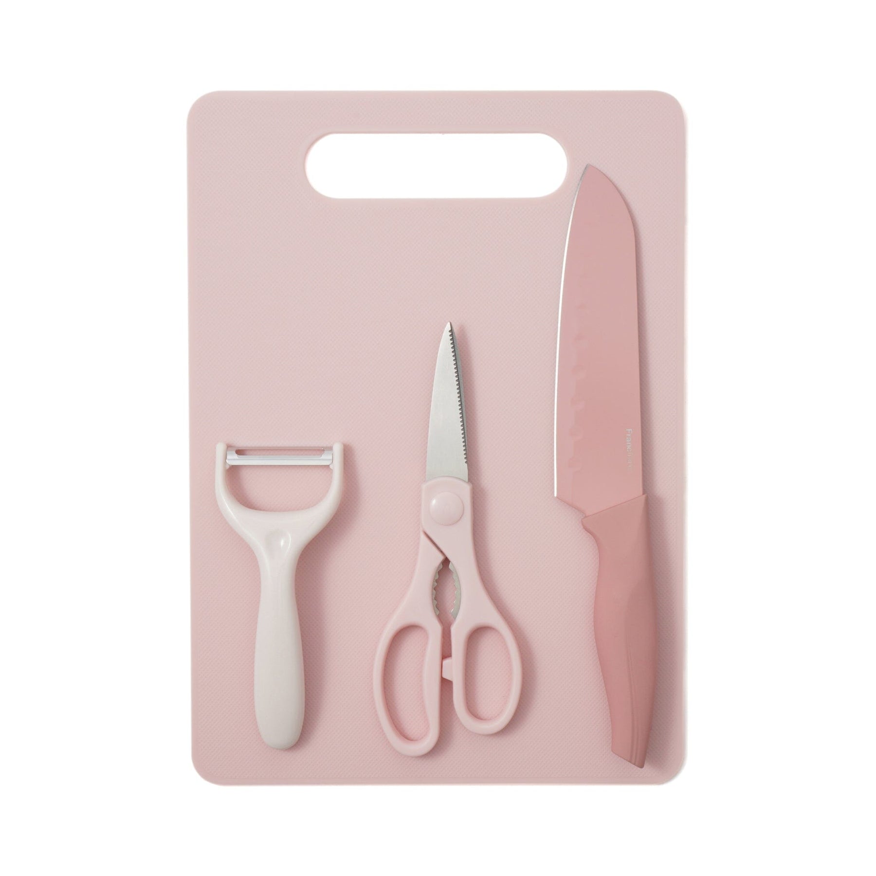 材質: 砧板: 聚丙烯(PP), 刀, 剪刀, 剝皮器手柄: 聚丙烯(PP), 刀, 剪刀, 剝皮刀片: 不鏽鋼, 刀刃塗層: 刀, 剪刀, 剝皮器手柄: 聚丙烯(PP)