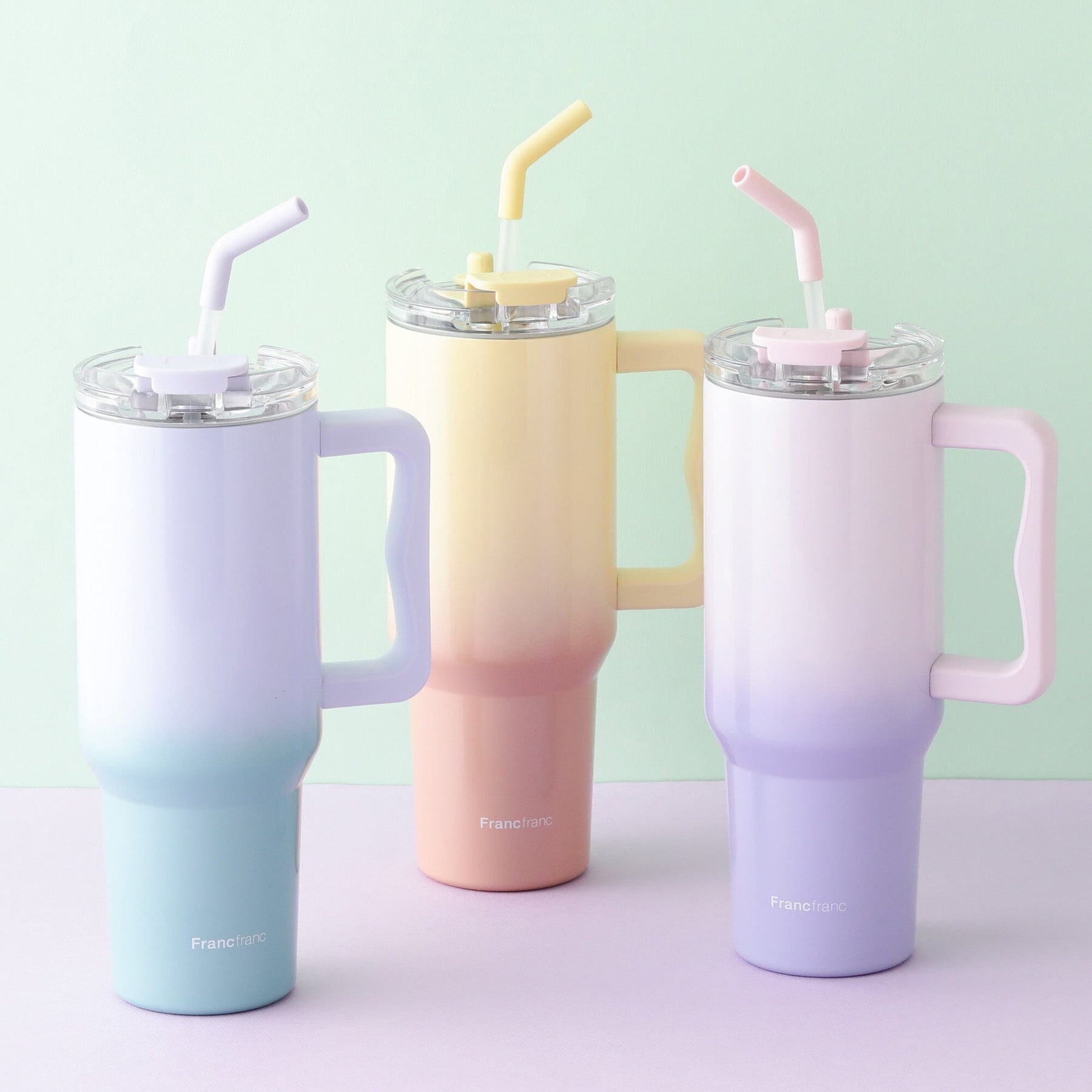 一個不鏽鋼杯子,帶有醒目的漸變色。