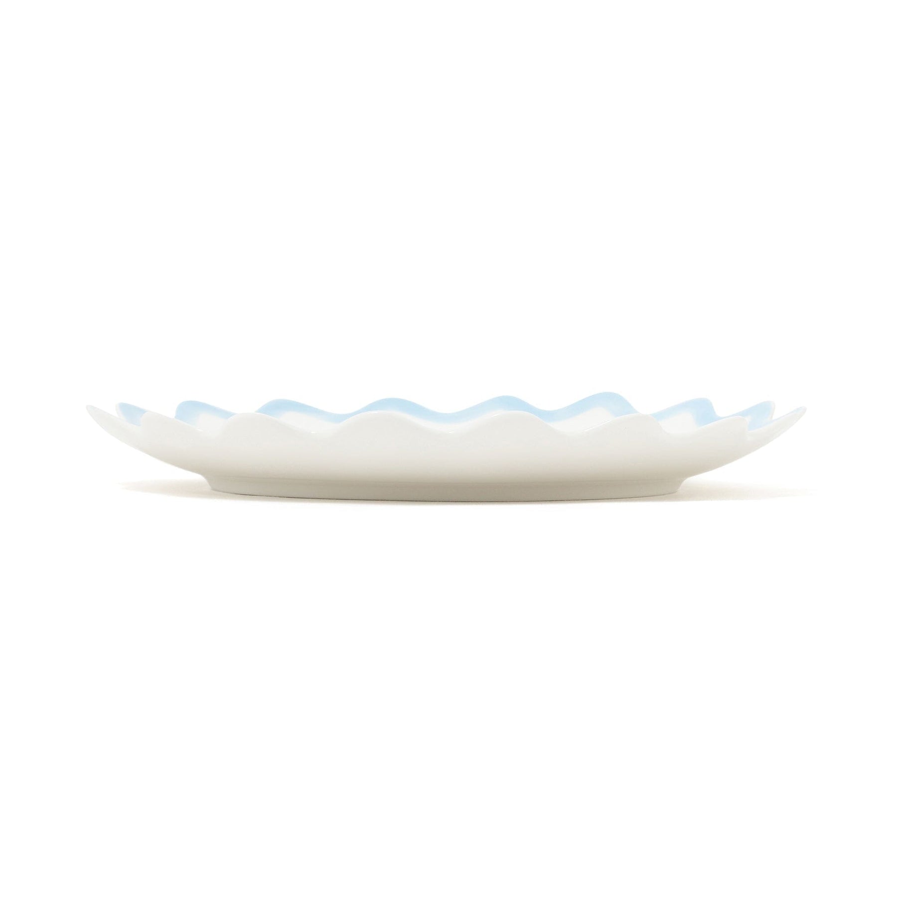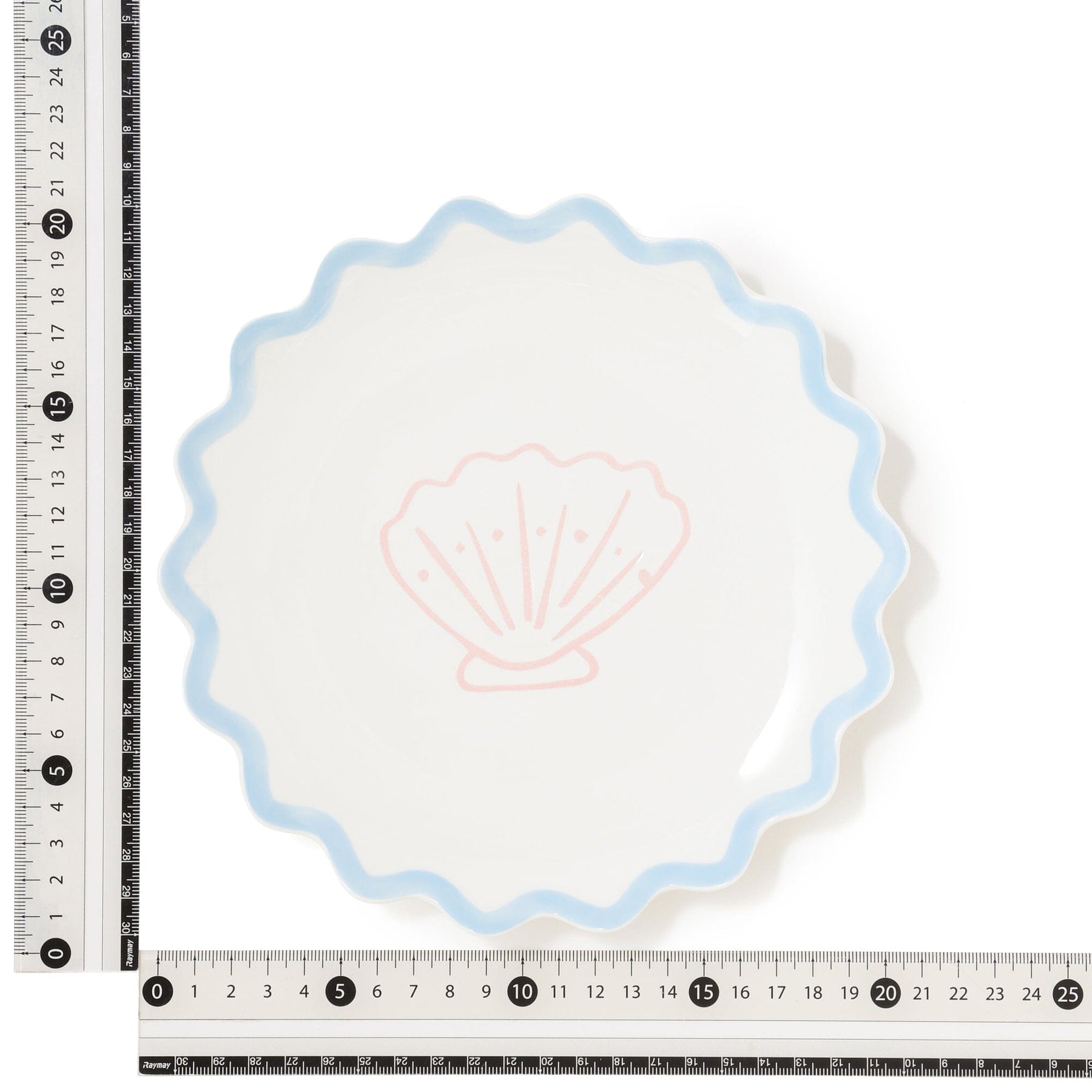 這是一個中等大小的盤子,採用波浪形設計,上面有海洋生物的插圖。