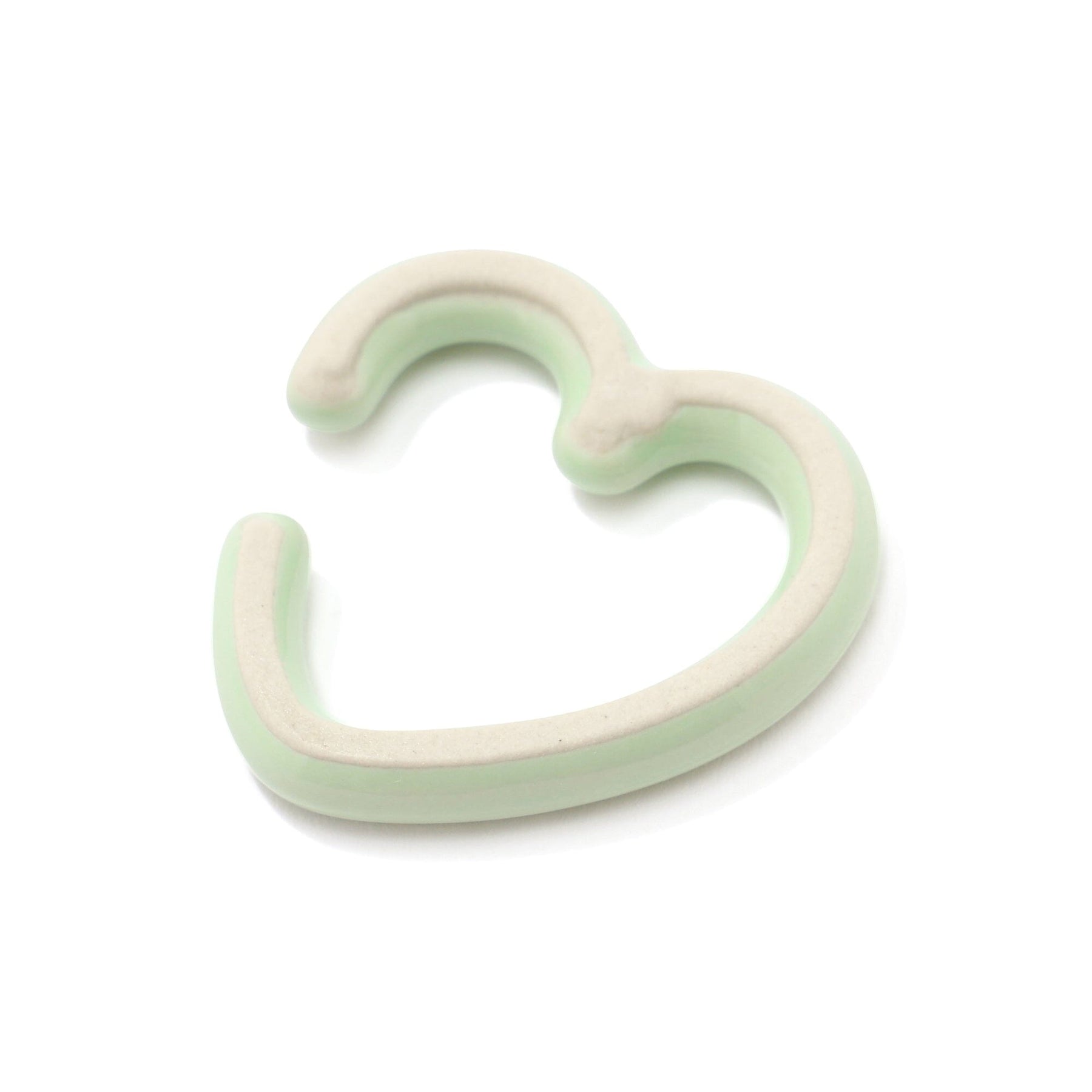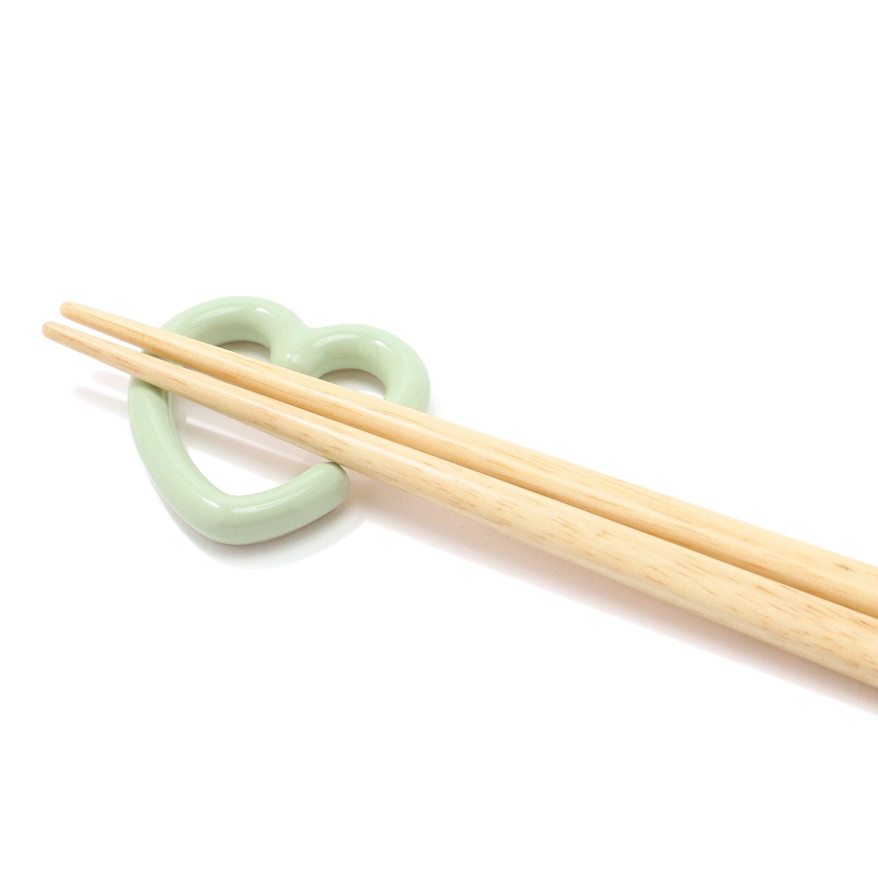 A chopstick rest with a heart-shaped motif.The heart has a slit in it to stabilize the chopsticks.