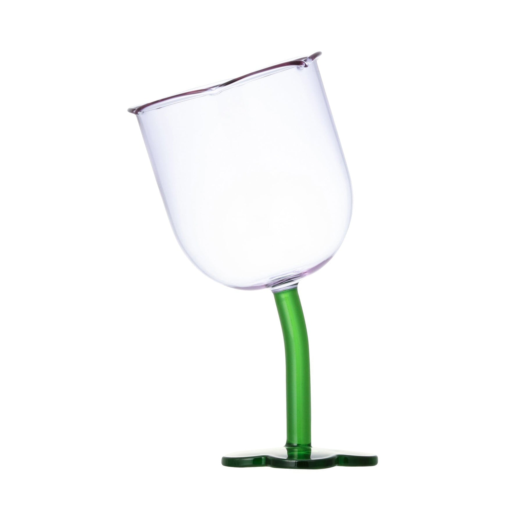 A cute wine glass with a twisted tulip shape.The bright color will make your dining table look gorgeous.