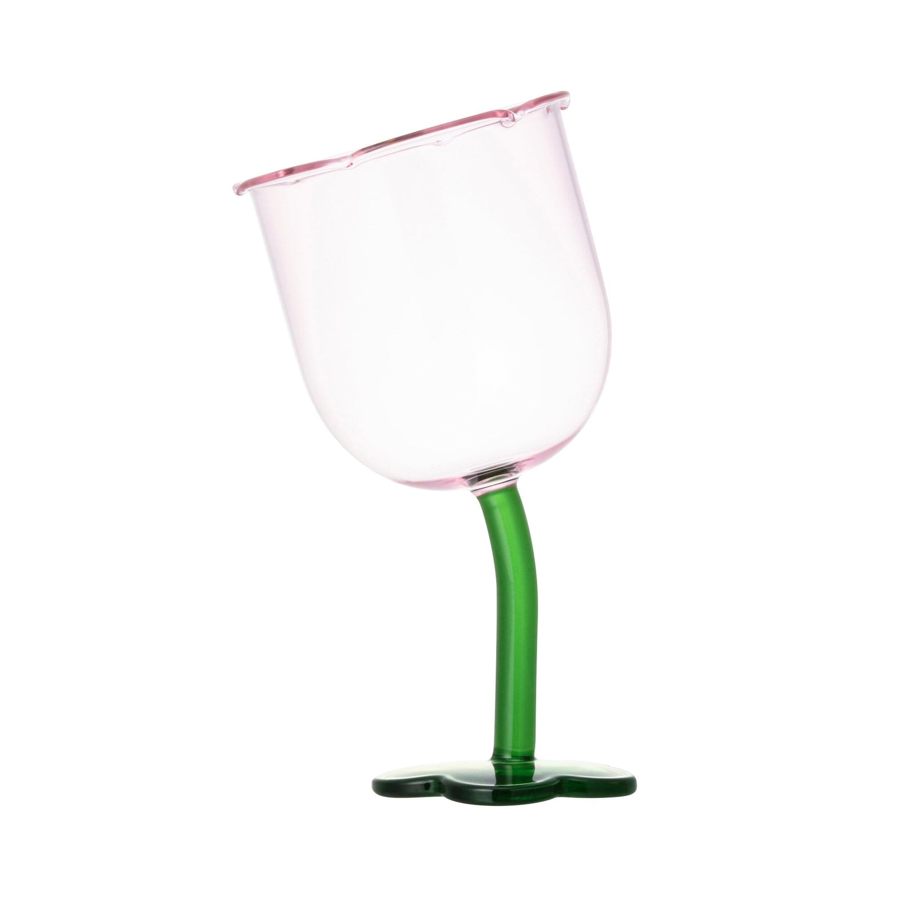 A cute wine glass with a twisted tulip shape.The bright color will make your dining table look gorgeous.