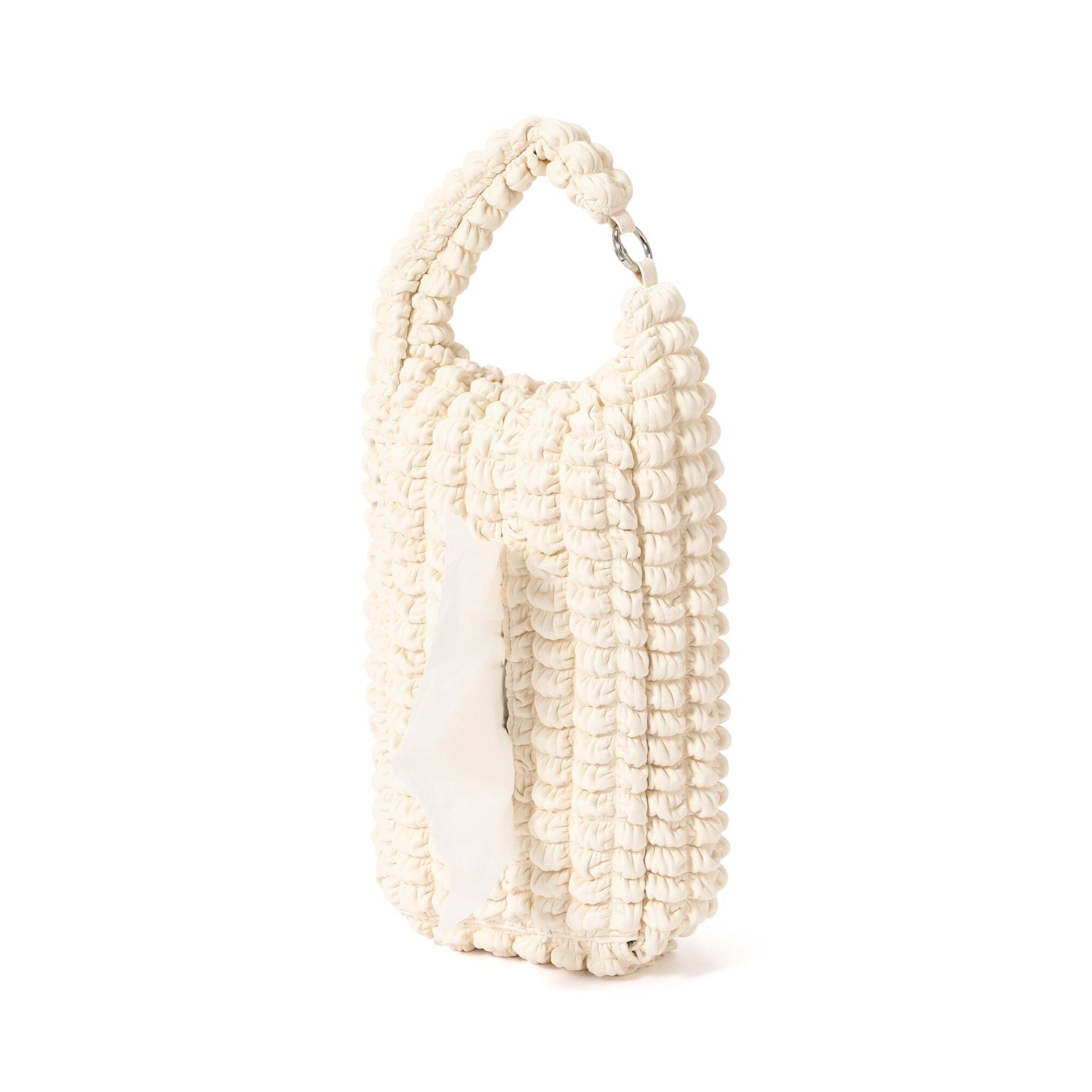 一個可愛的紙巾盒,由蓬鬆的材料製成,可以懸掛。