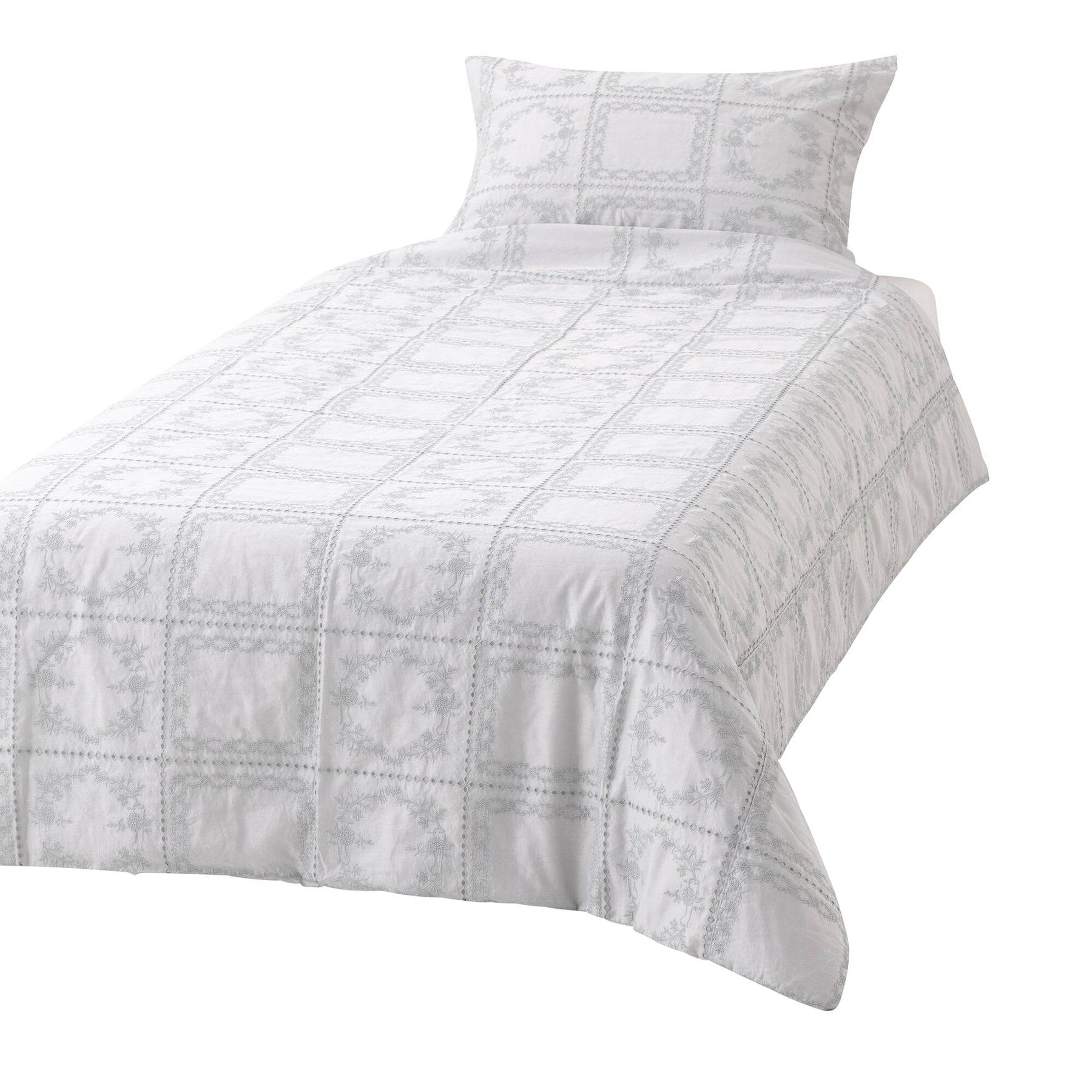 Flower Square Embroidery Comforter Case Single Light Gray