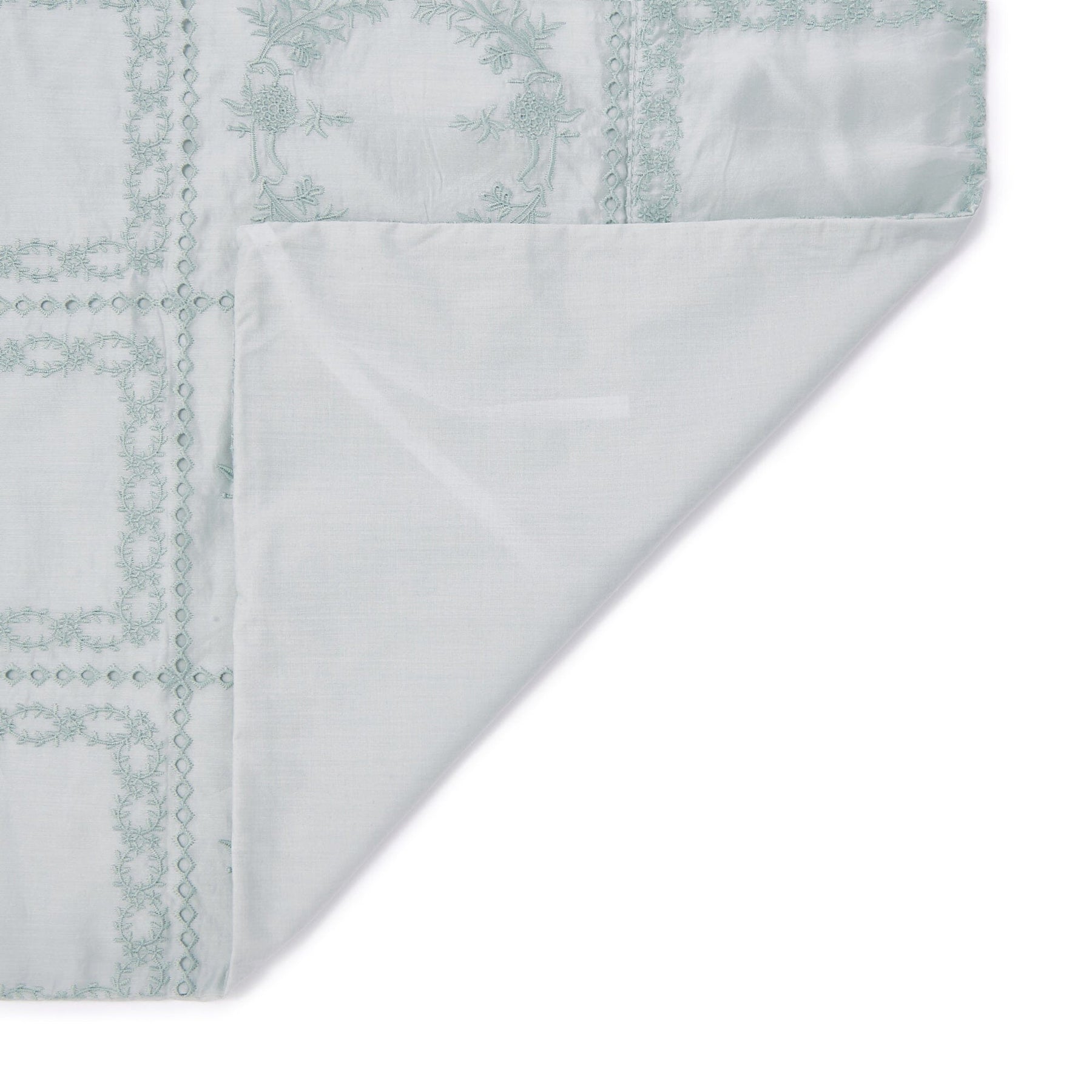 This duvet cover features luxuriously delicate floral embroidery on a fabric with an elegant sheer and subtle sheen.