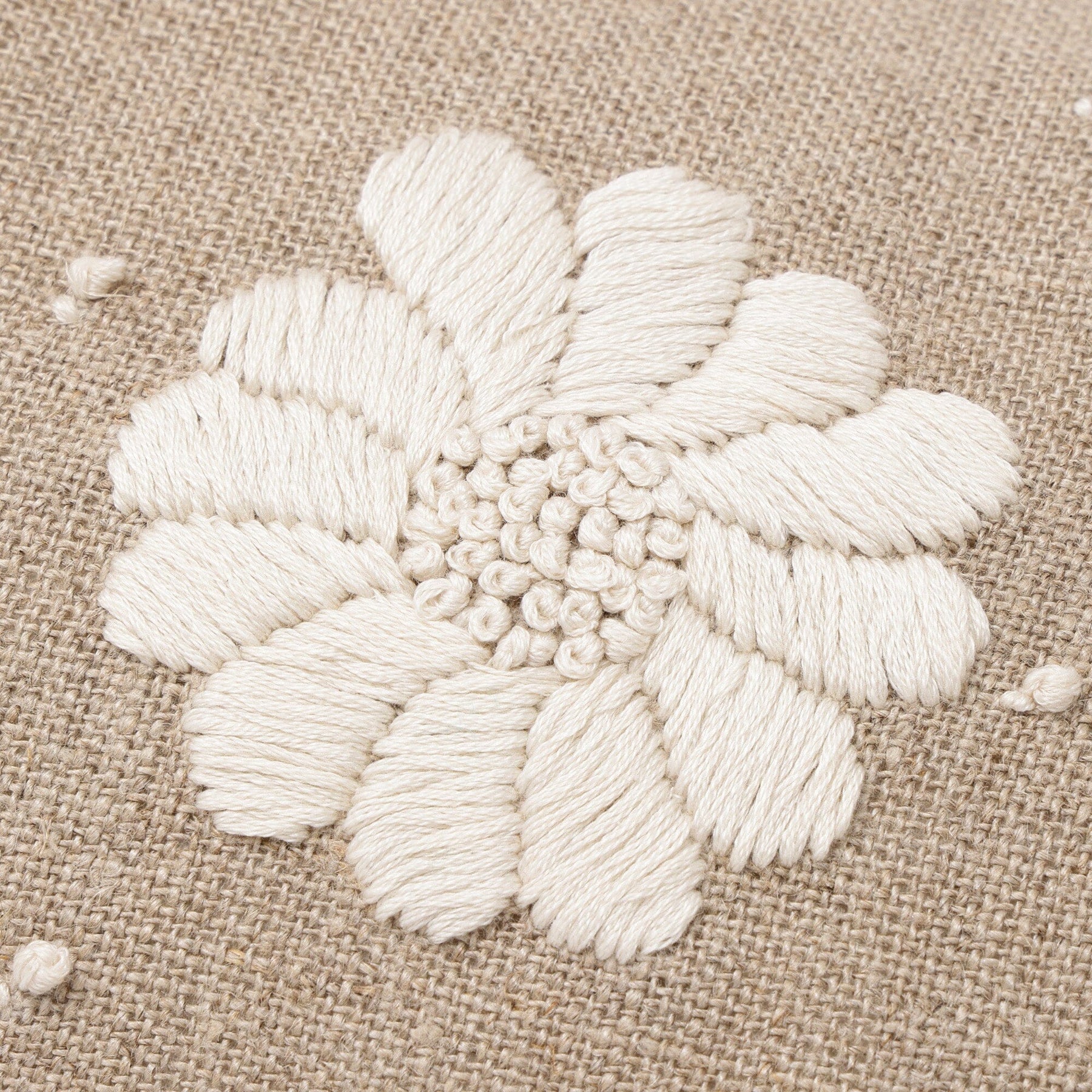 Linen Emb Flower Cushion Cover 400X250 Beige