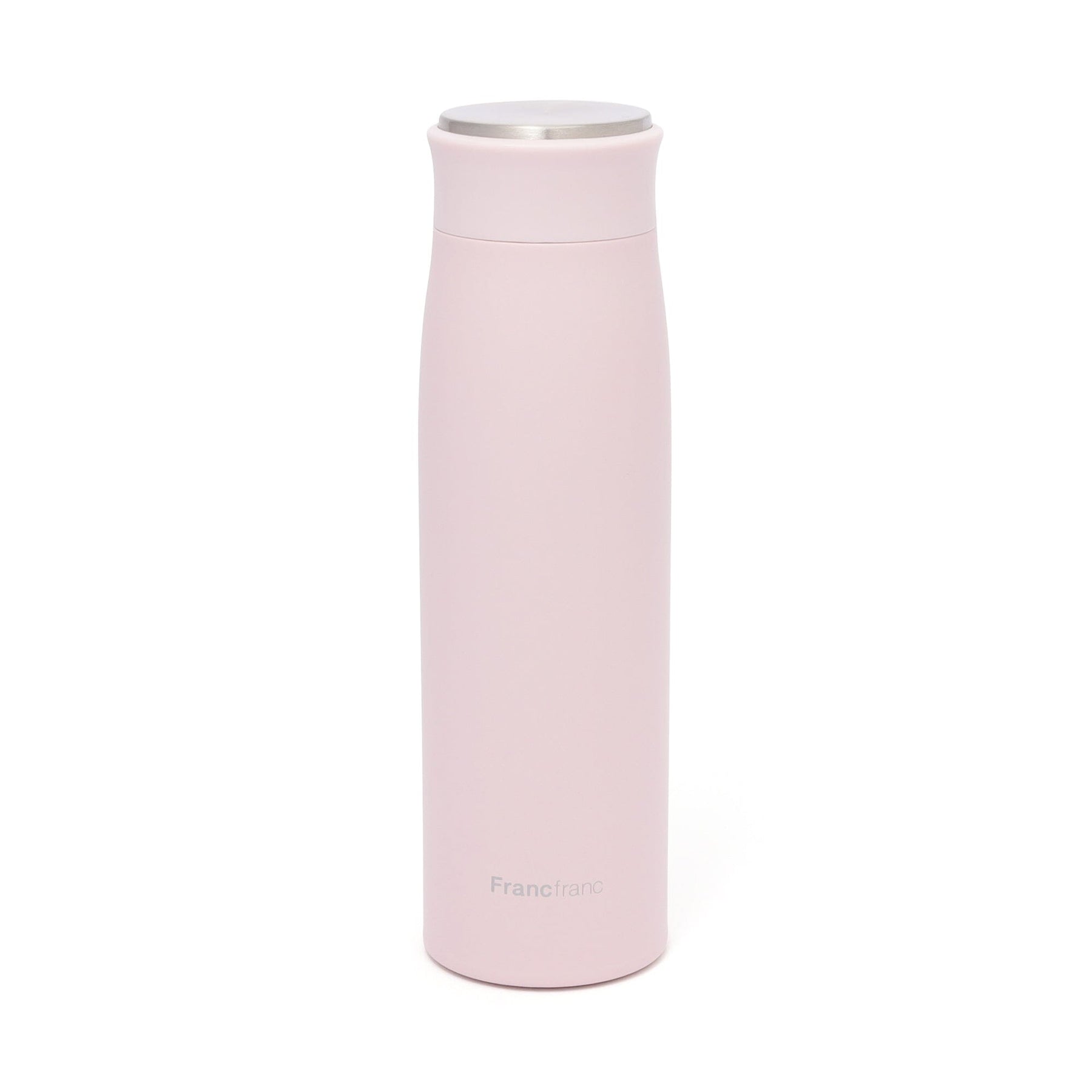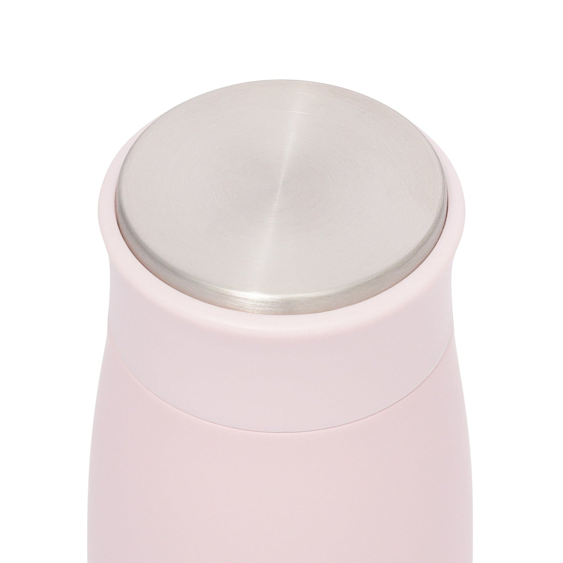 This stainless steel bottle has an elegant look, with a metallic sheen that stands out against its matte finish.