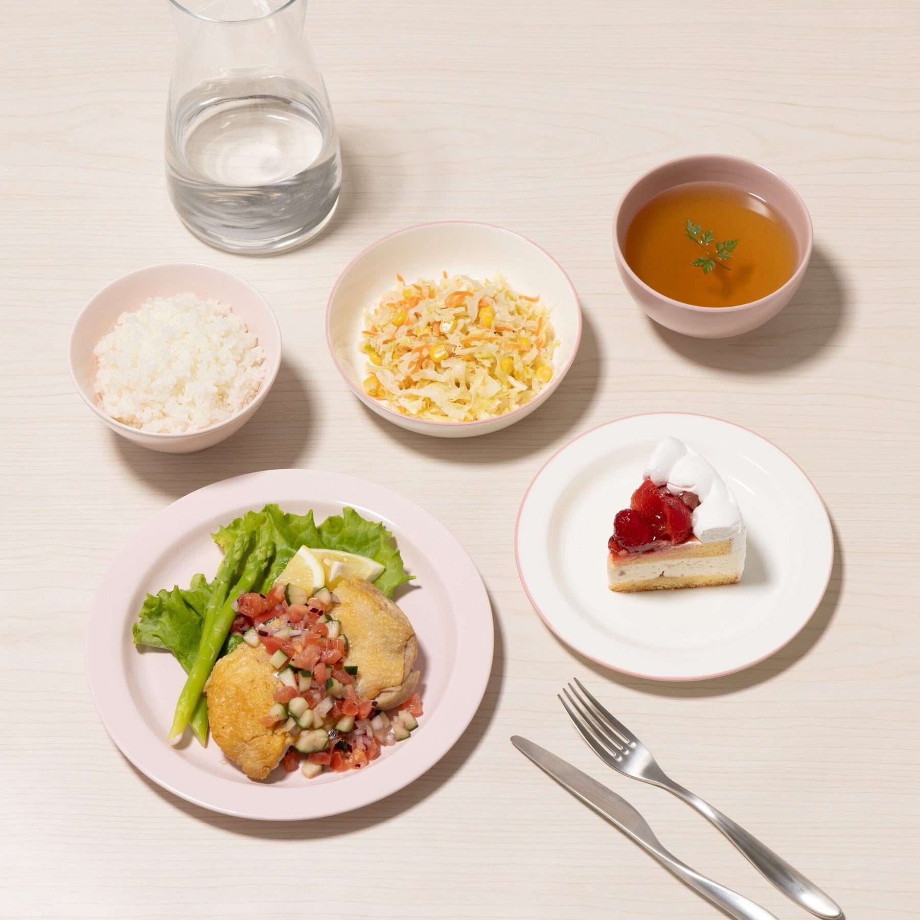 By simply coordinating the tableware in the set, you can easily create a beautiful dining table without any complicated techniques.