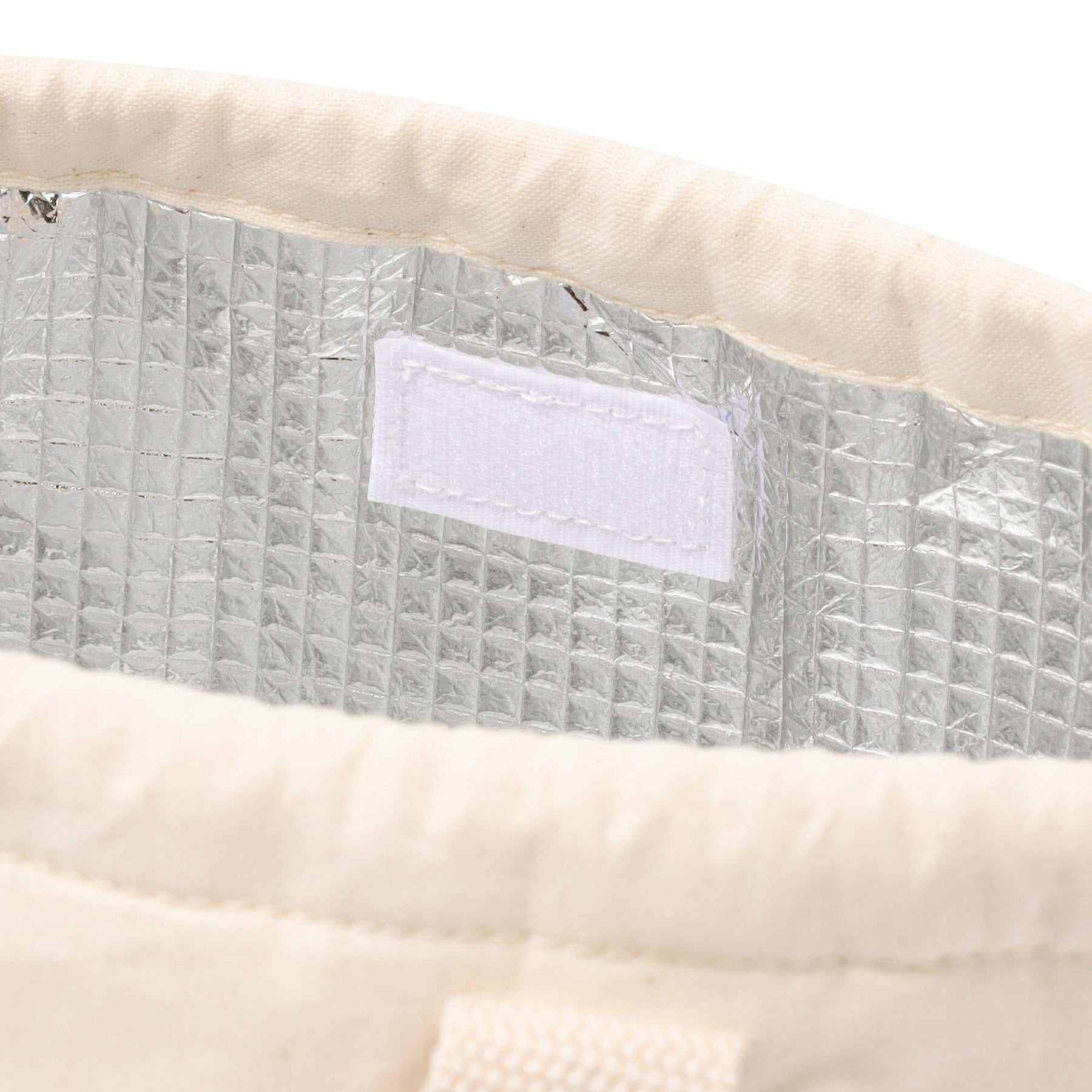 It has an aluminum sheet inside for heat and cold insulation, and is large enough to fit a lunch box, chopsticks, and a small stainless steel bottle.